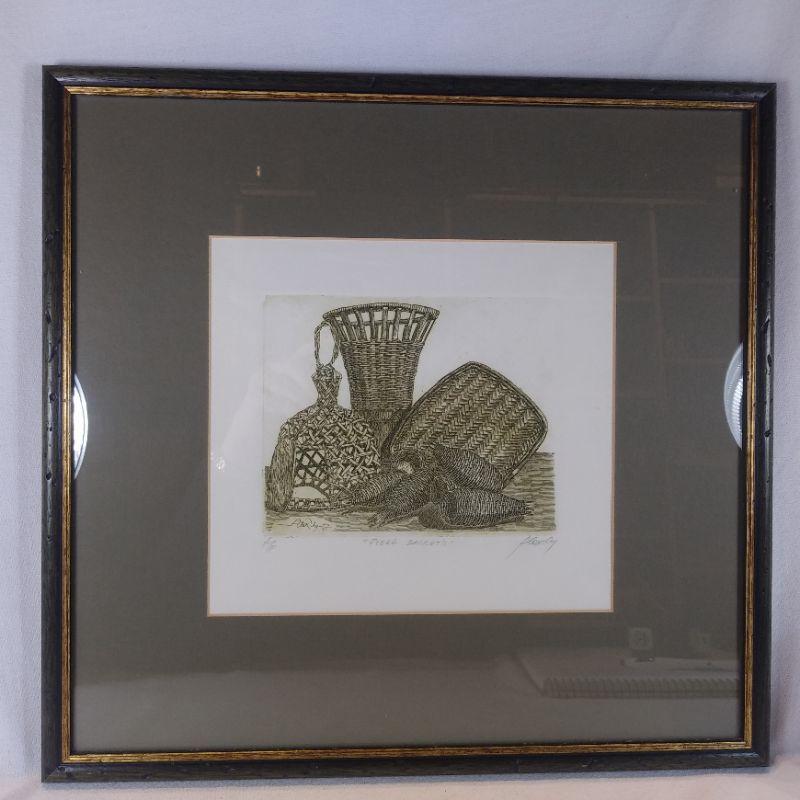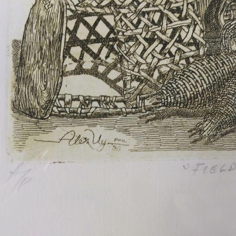 This lot is for a Signed Etching by Alex Uy. Marked A/P. Done in olive-colored ink. Framed 15-inches wide X 14-inches tall. Very nice and ready to hang. Local Pick-Up ONLY!