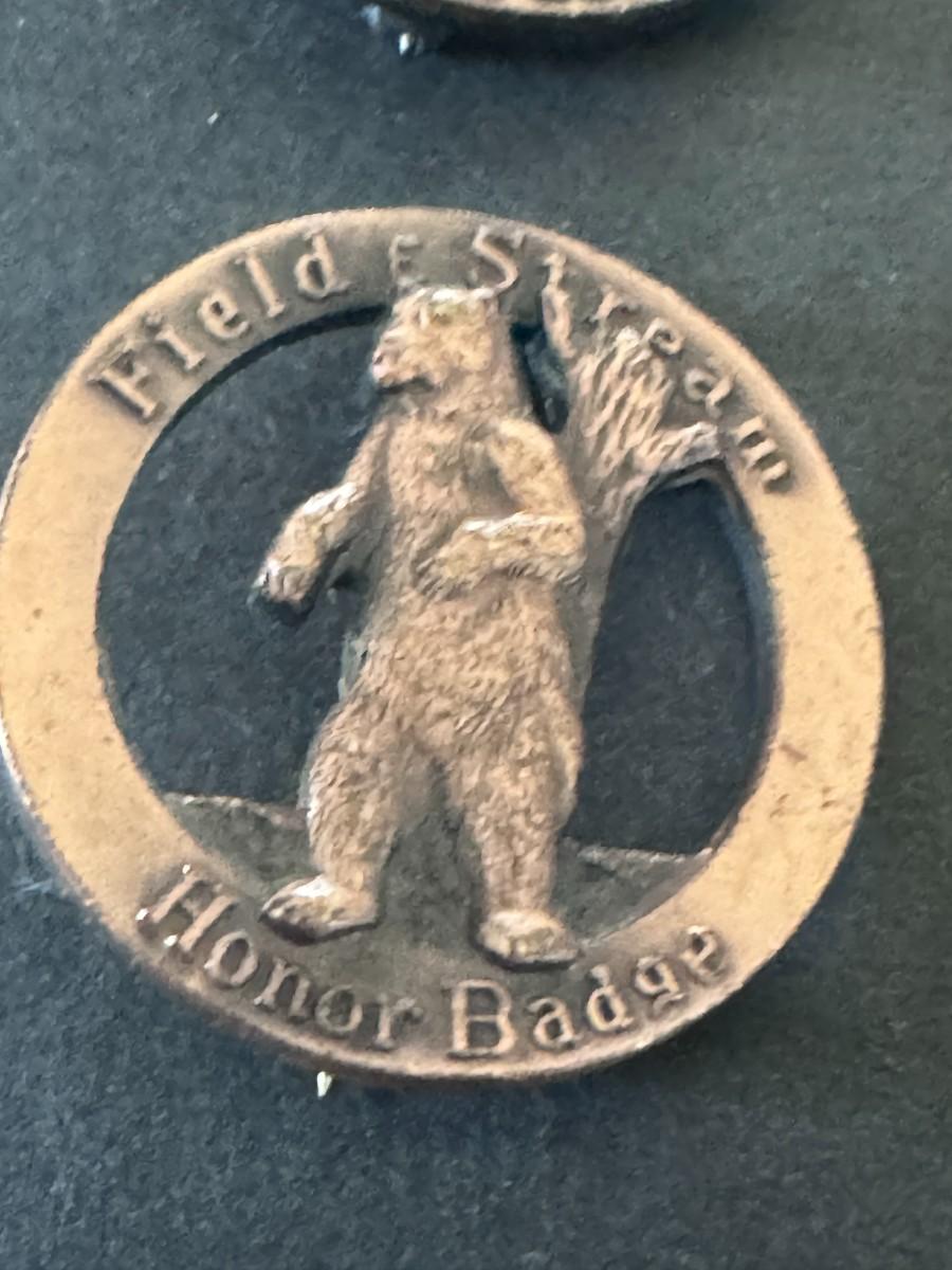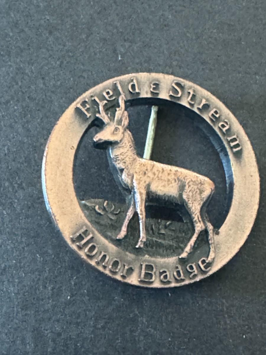 These badges were awarded by Field & Stream magazine to hunters and anglers who achieved notable feats, such as catching fish of a certain size or successfully hunting big game.