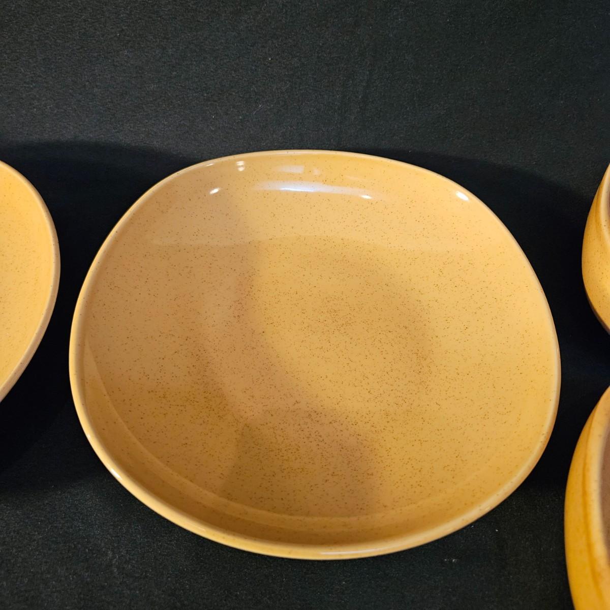 An assortment of Fiesta and Stoneware that includes a chip and dip plate that is 12"D, four soup mugs with two matching plates, four mugs, six Fiesta style plates by Home Trends and a Fiesta Pitcher. Shipping available