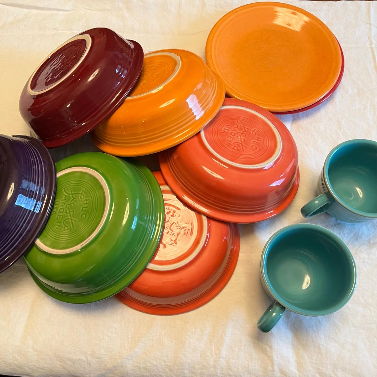 Good shape, no saucers. Plates have noticeable wear. Bowls are very good.