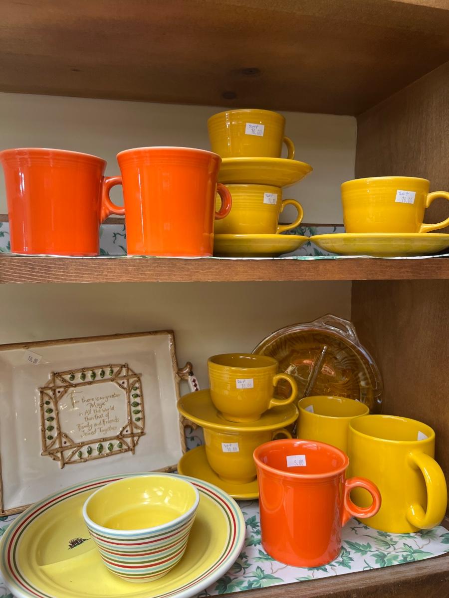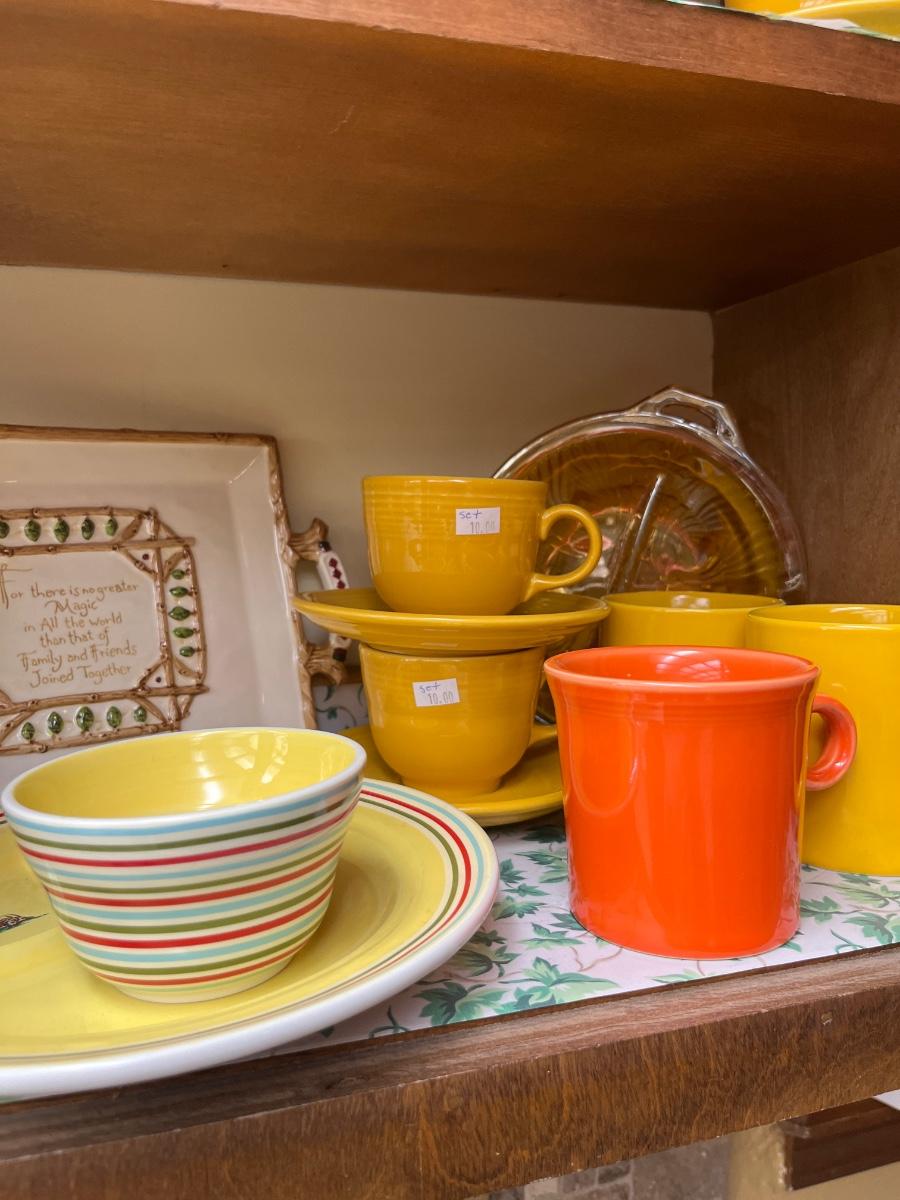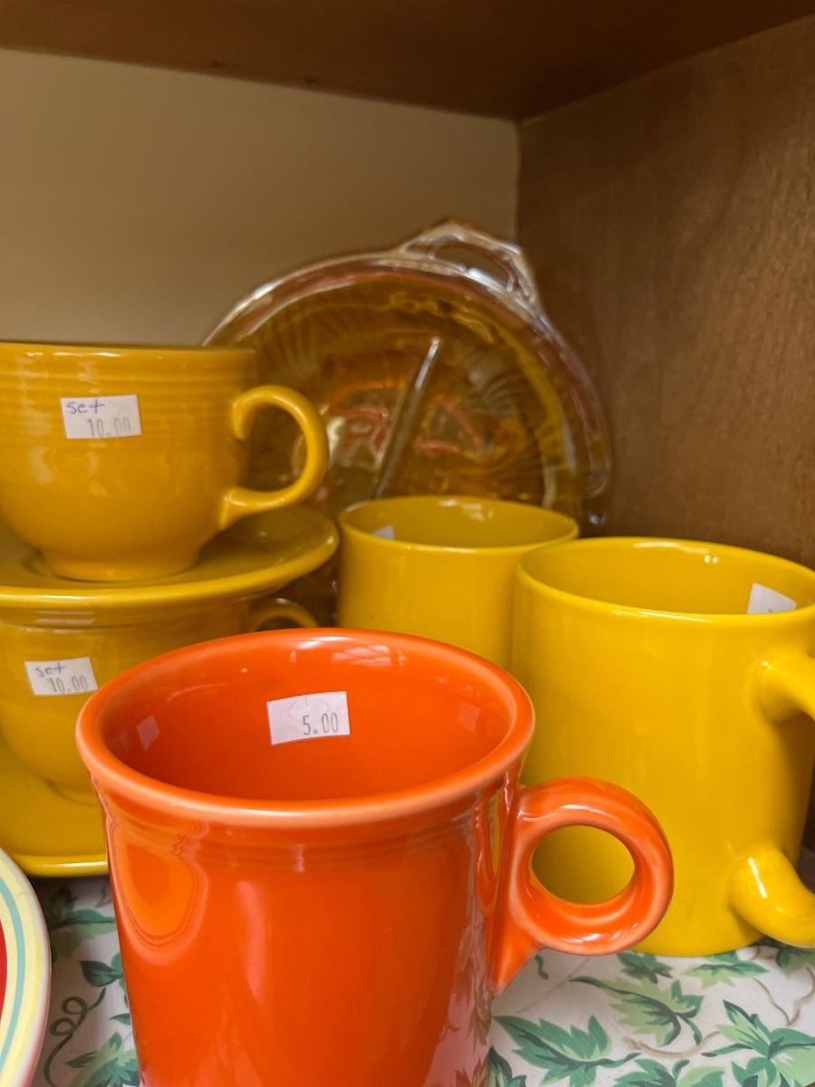 Fiesta cups & Saucers, serving dishes.