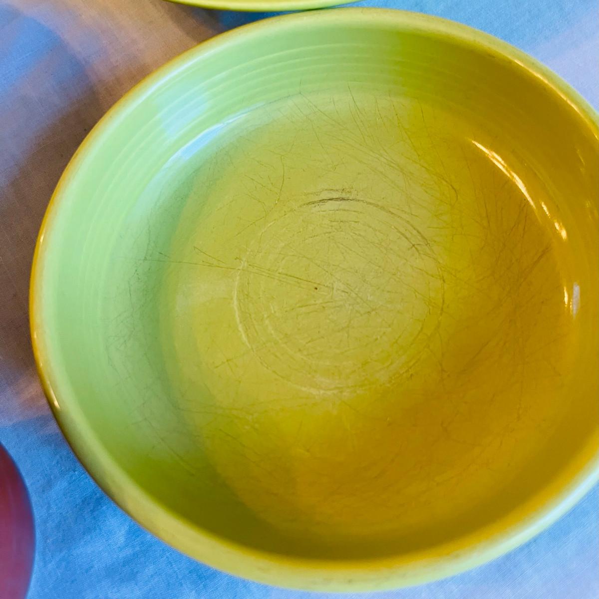 While the photos make these look great they are in fact AS IS. Lots of knife scratching. Good for everyday use.