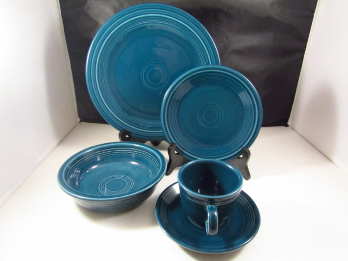 Fiesta Five Piece Place Setting. Color is possibly Spruce. In used condition.