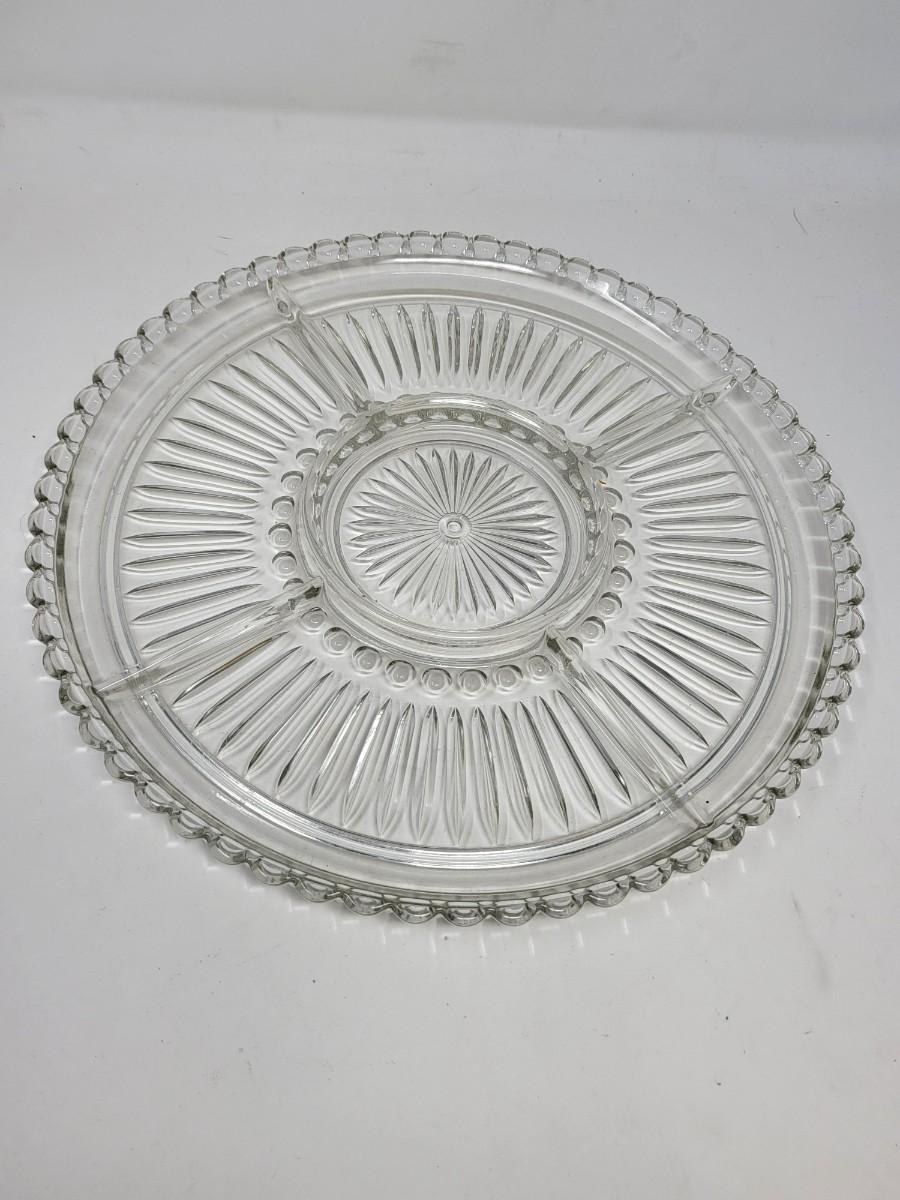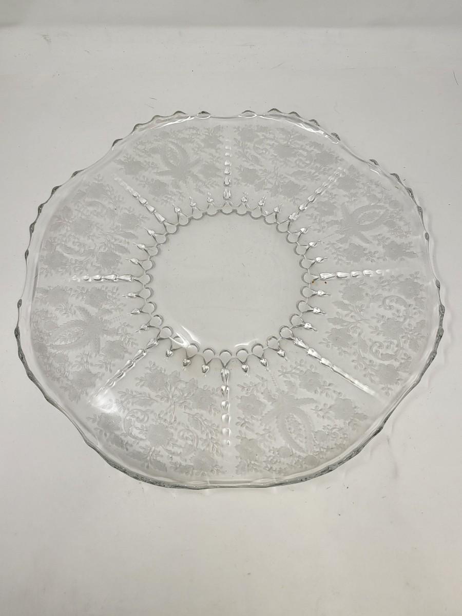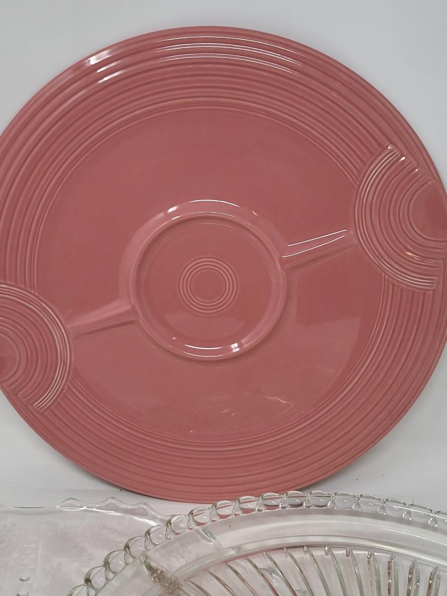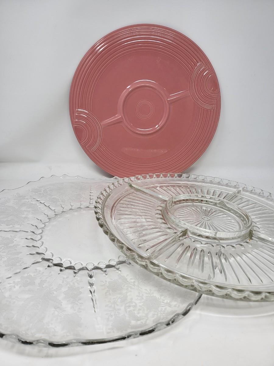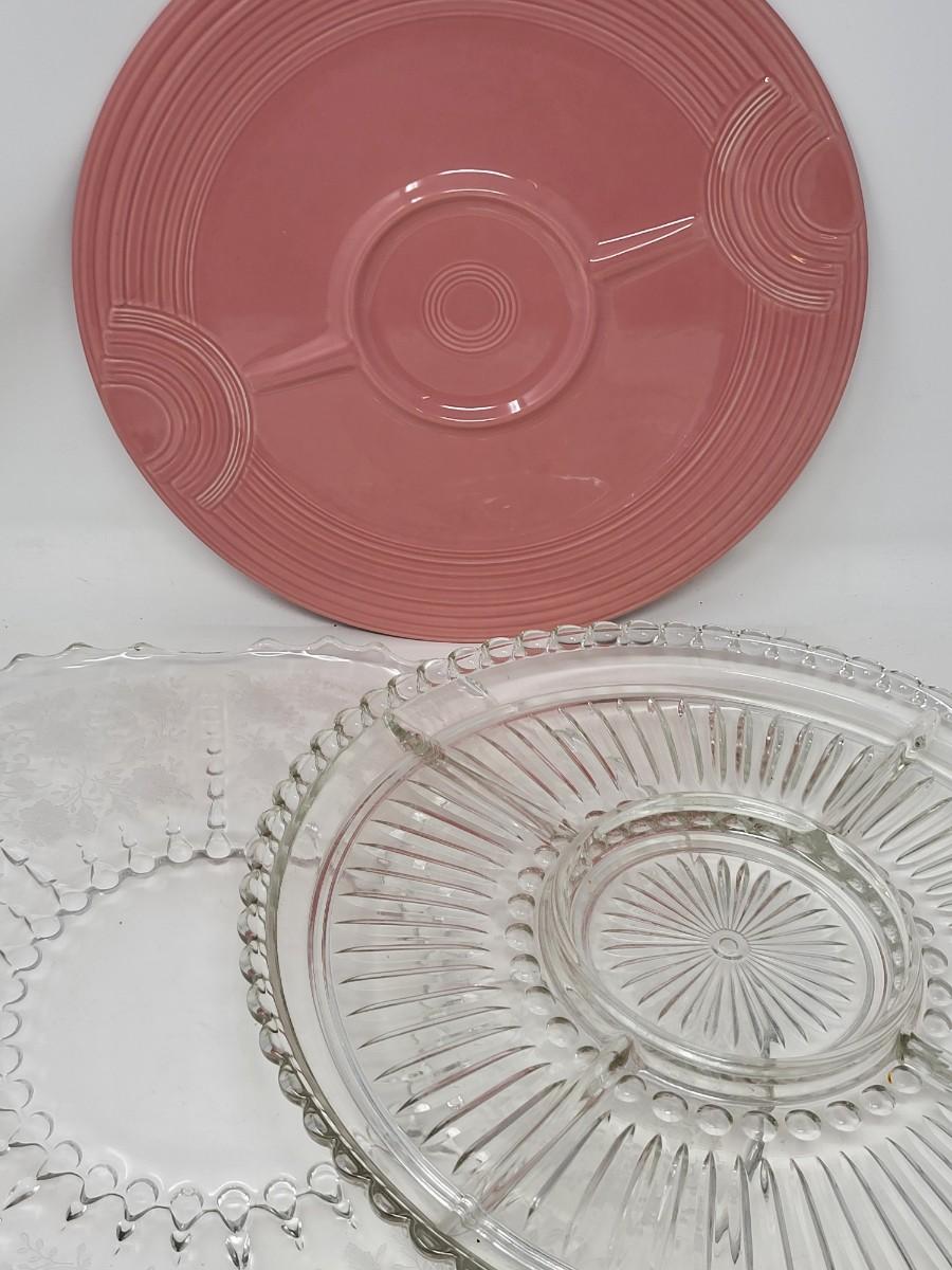 Fiesta platter, two clear glass platters. Sizes range from 12.25" to 14".