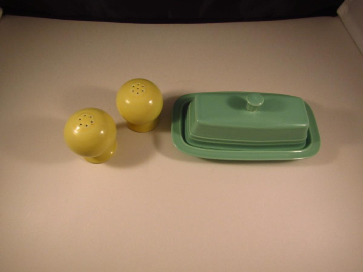 Fiesta Salt and Pepper Shakers and Butter Dish