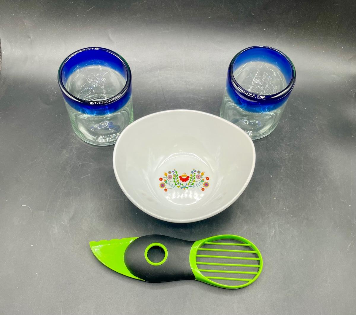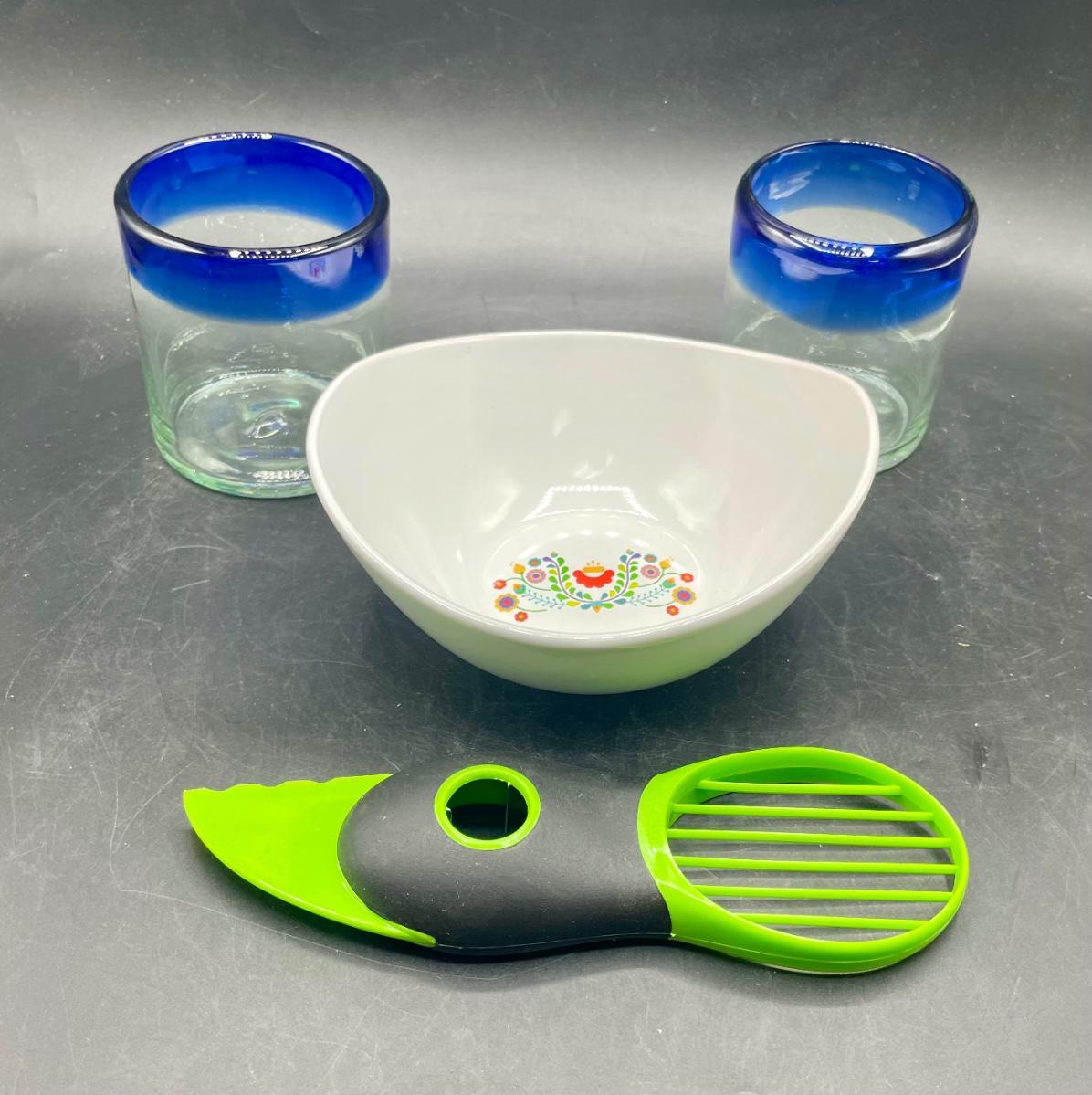 Fiesta Set: Guacamole Bowl, Avocado Knife and 2 Margarita Glasses