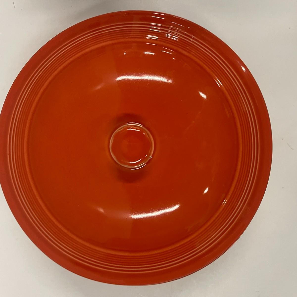 Orange Fiesta-ware covered vegetable dish. Excellent condition.