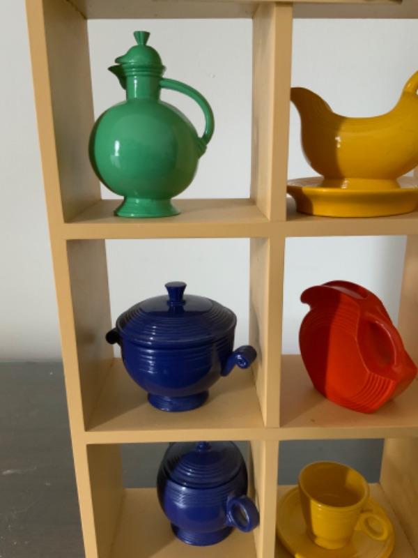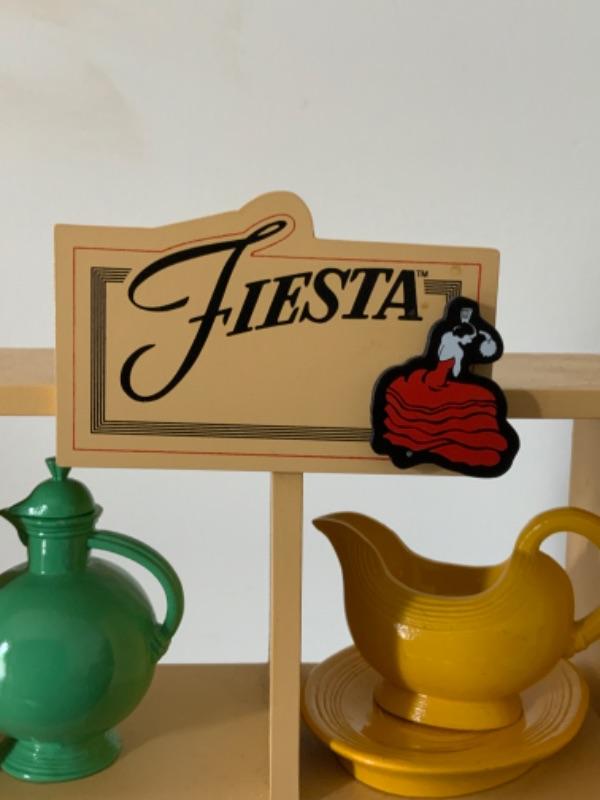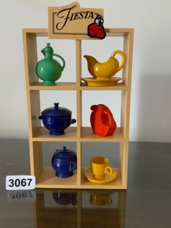 Fiesta ware display shadowbox with mini fiesta ware pieces Lot 3067