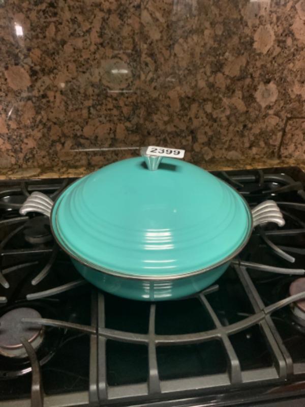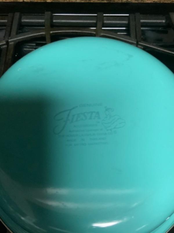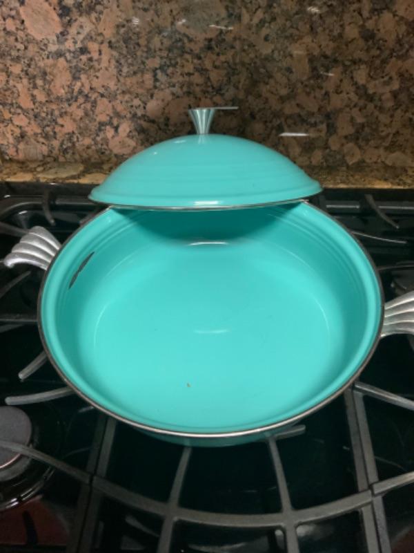 Fiesta turquoise blue casserole pan with Lid silver metal handles Lot 2399