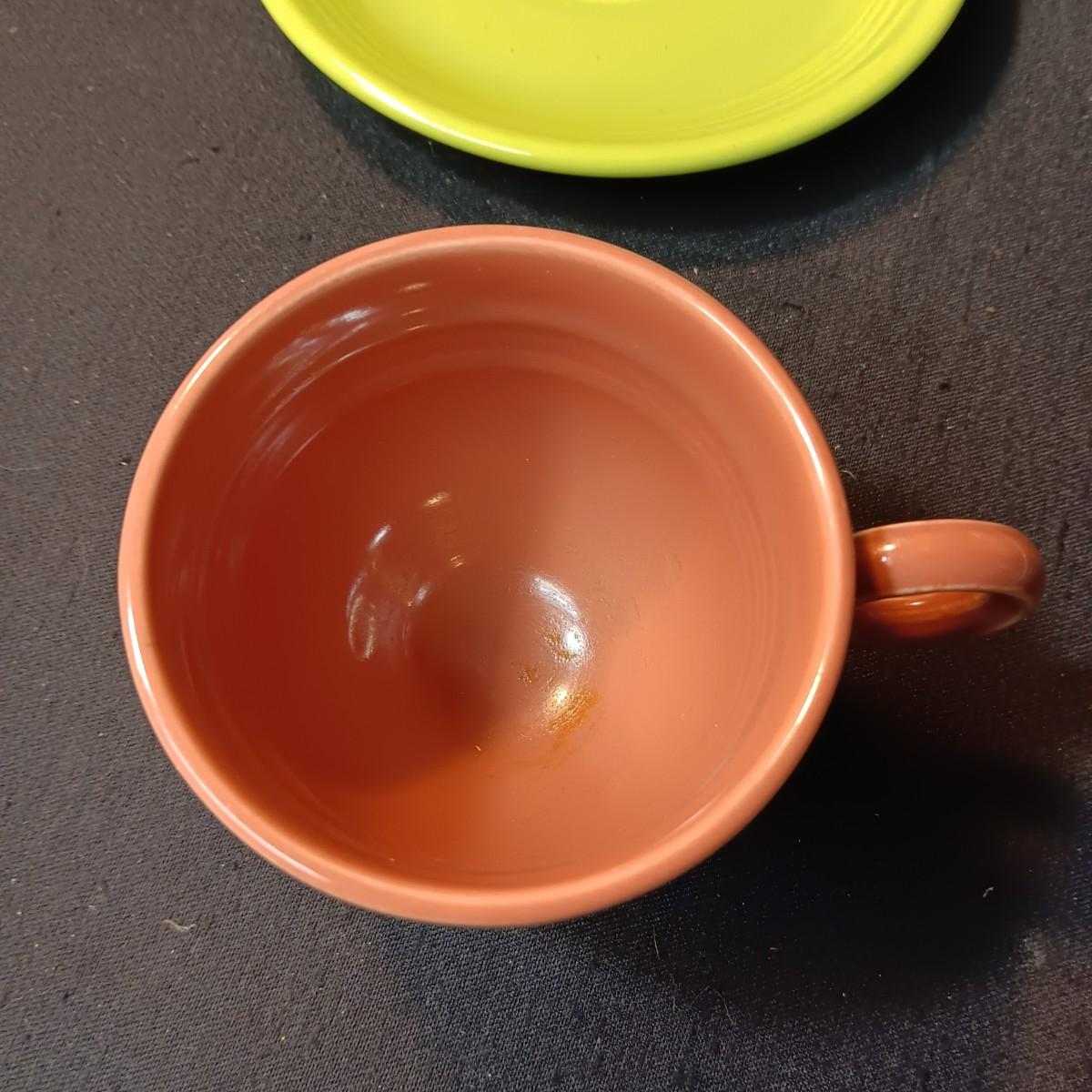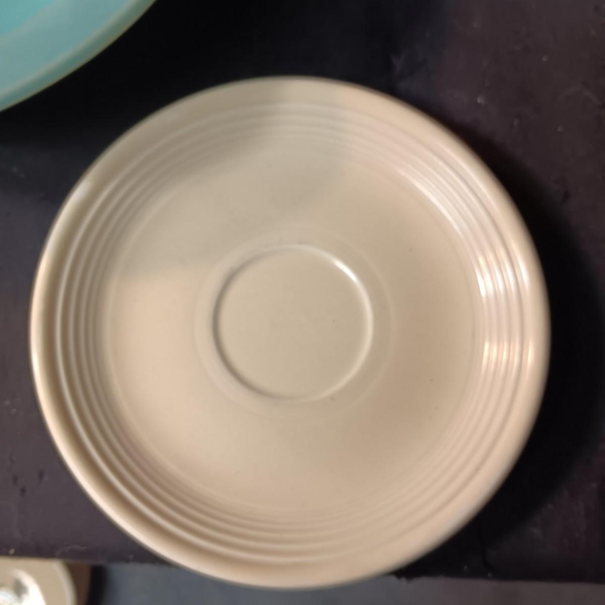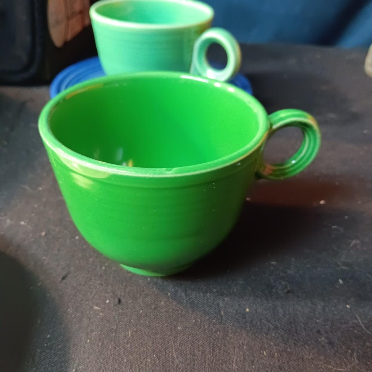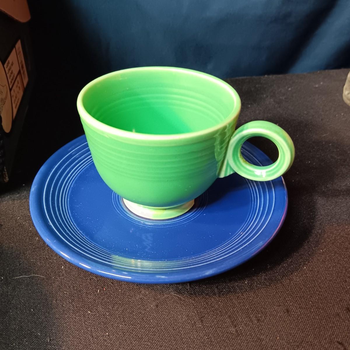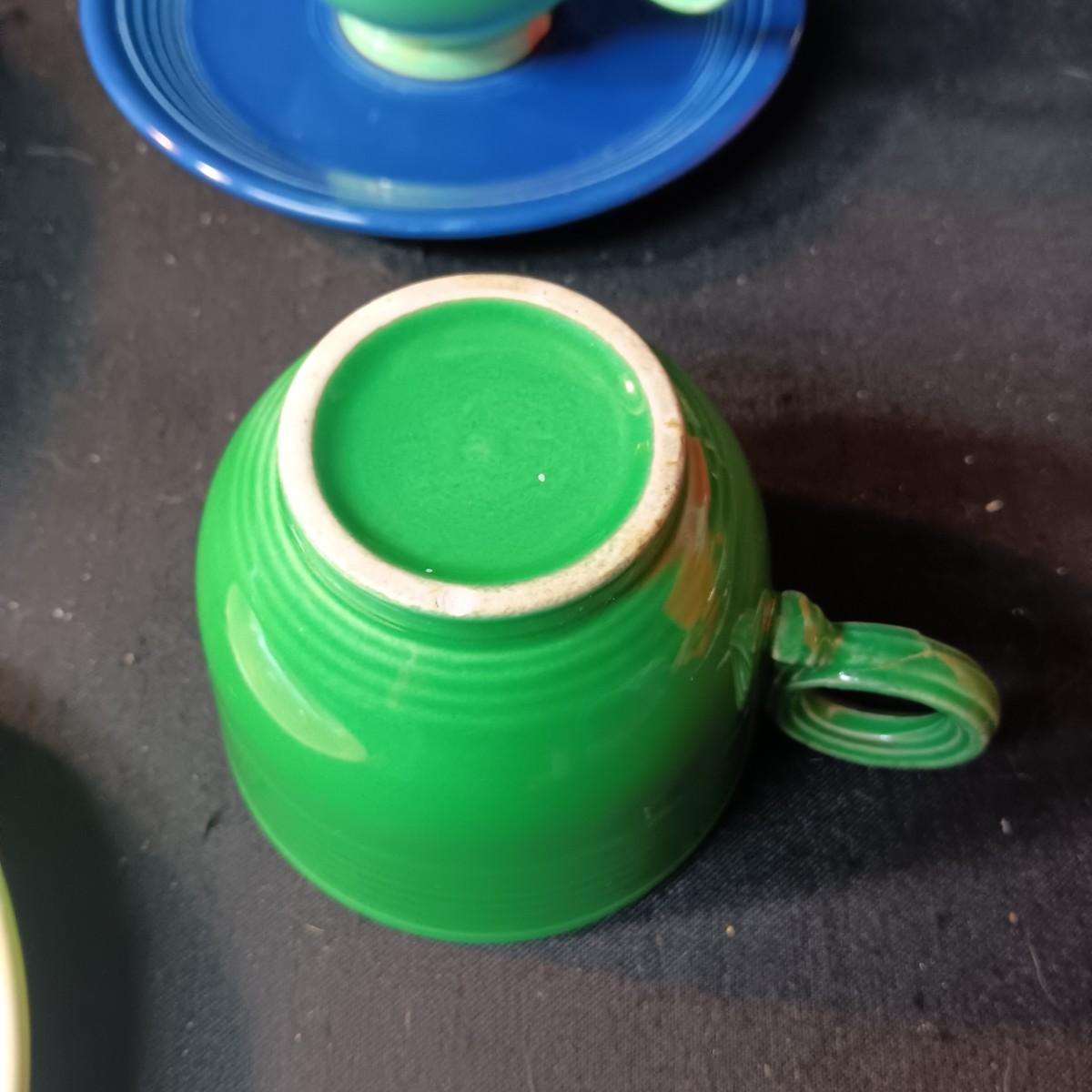 FIESTAWARE CUPS AND SAUCERS, COMPOTE, SERVING BOWL & 2 PINT JUG