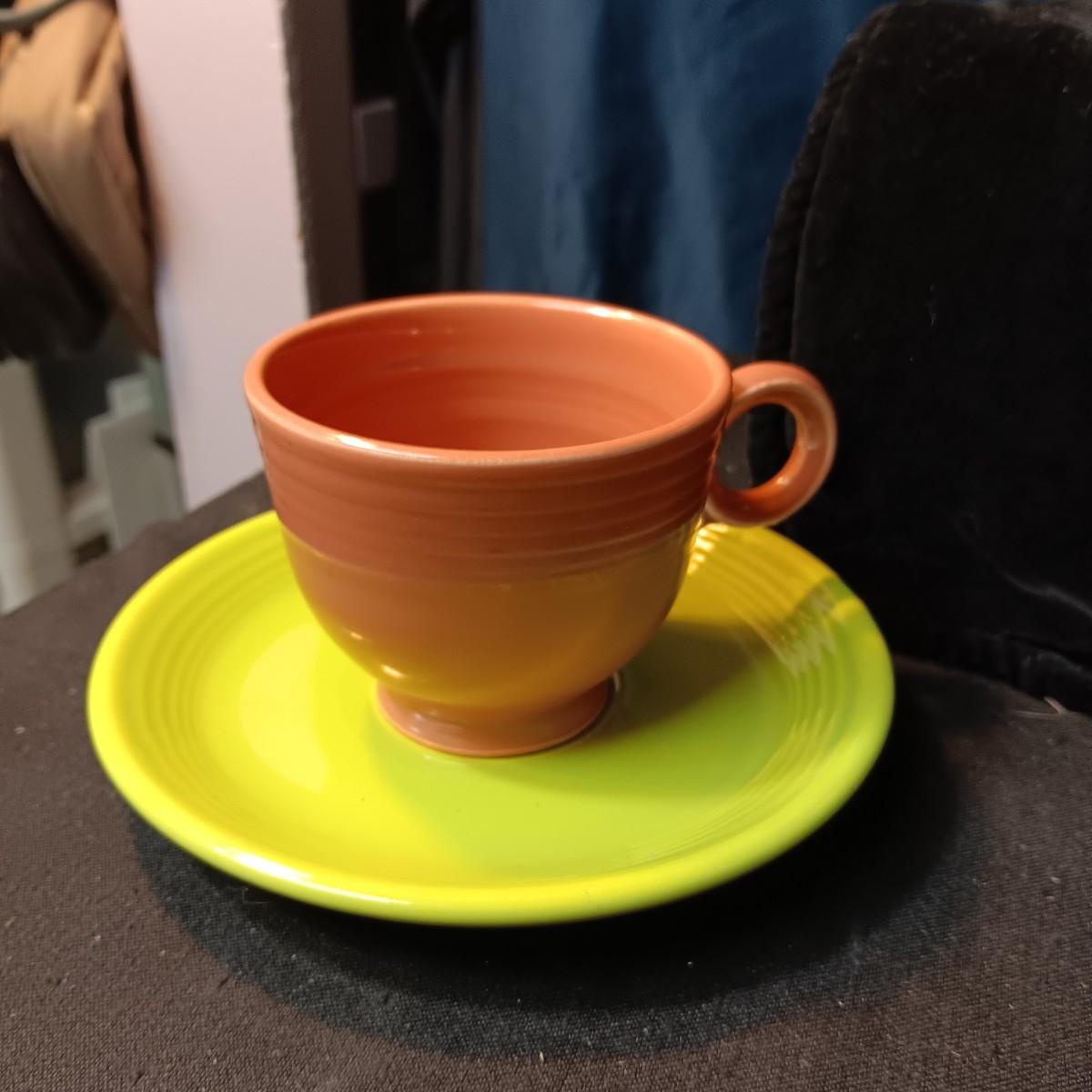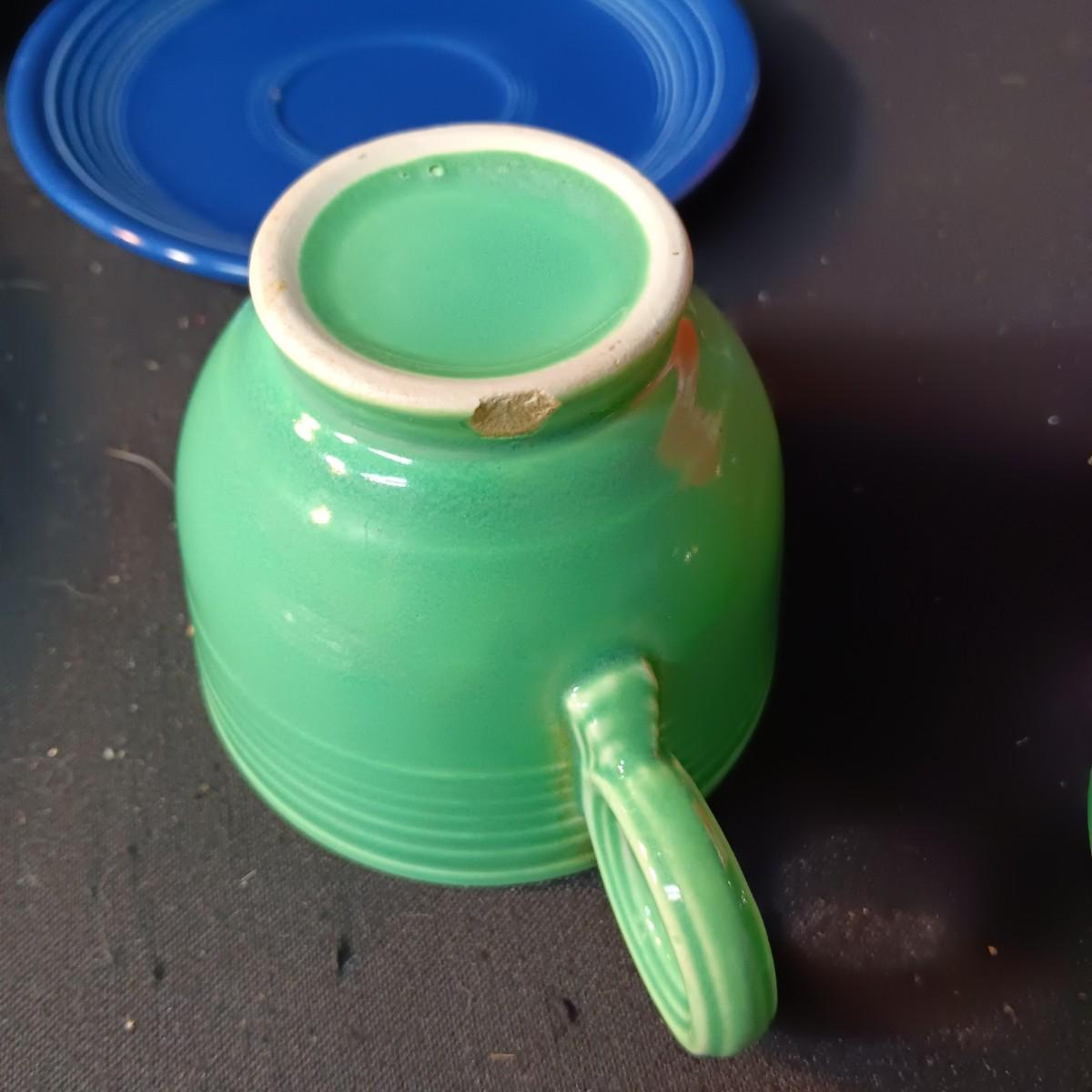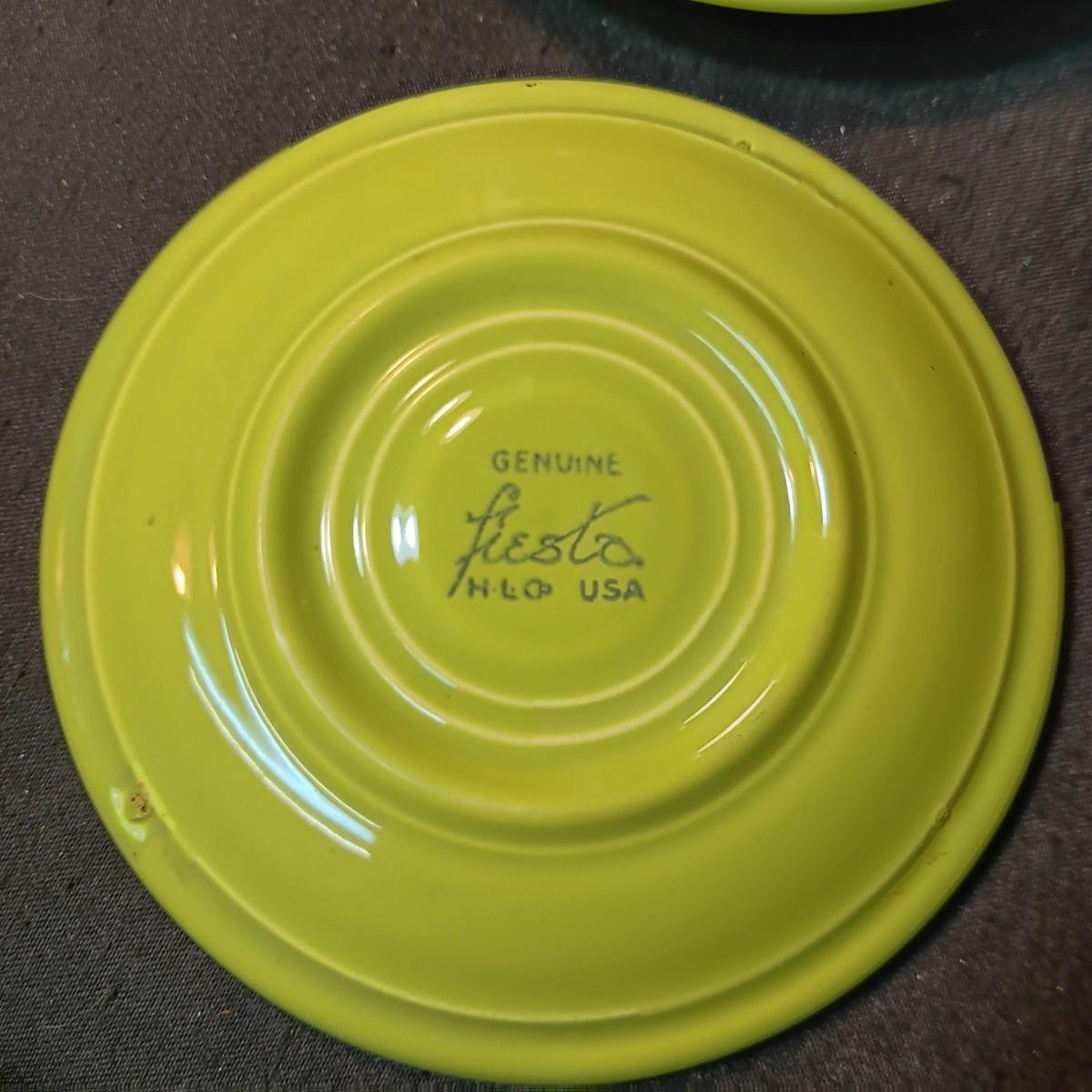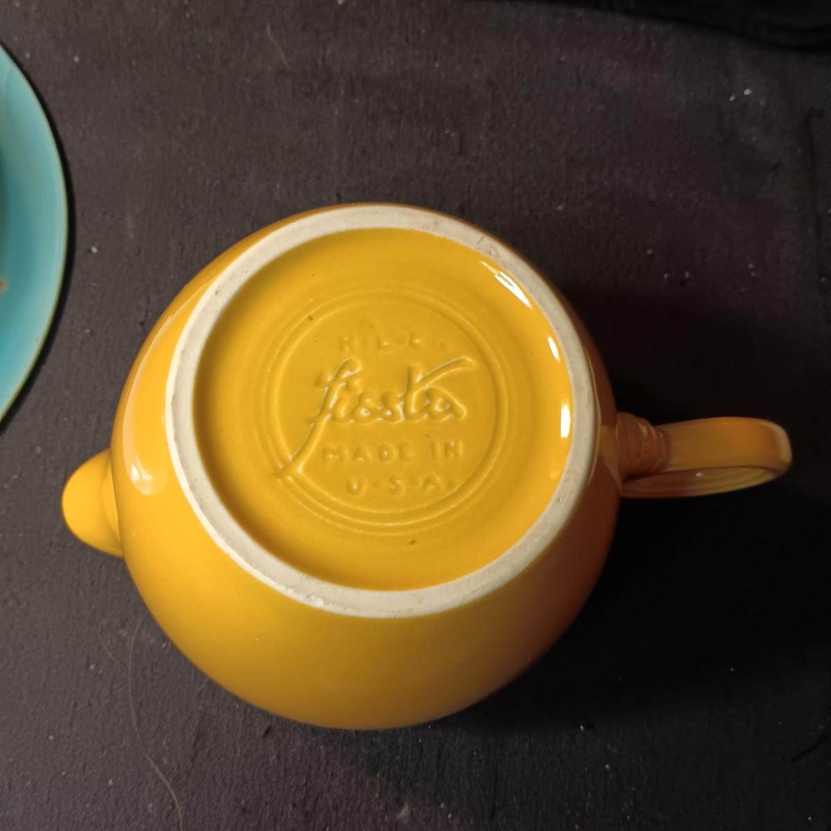 FIESTAWARE CUPS AND SAUCERS, COMPOTE, SERVING BOWL & 2 PINT JUG