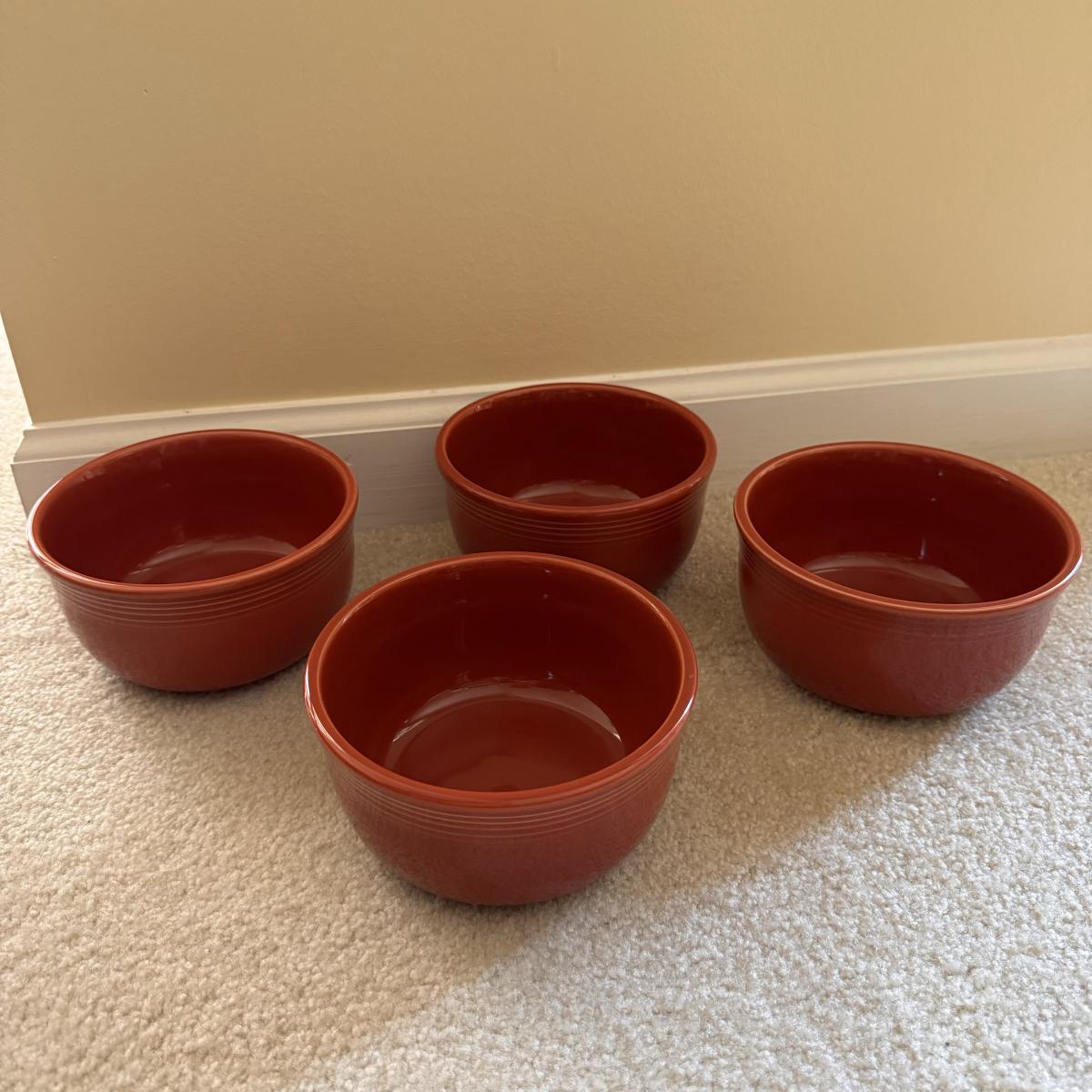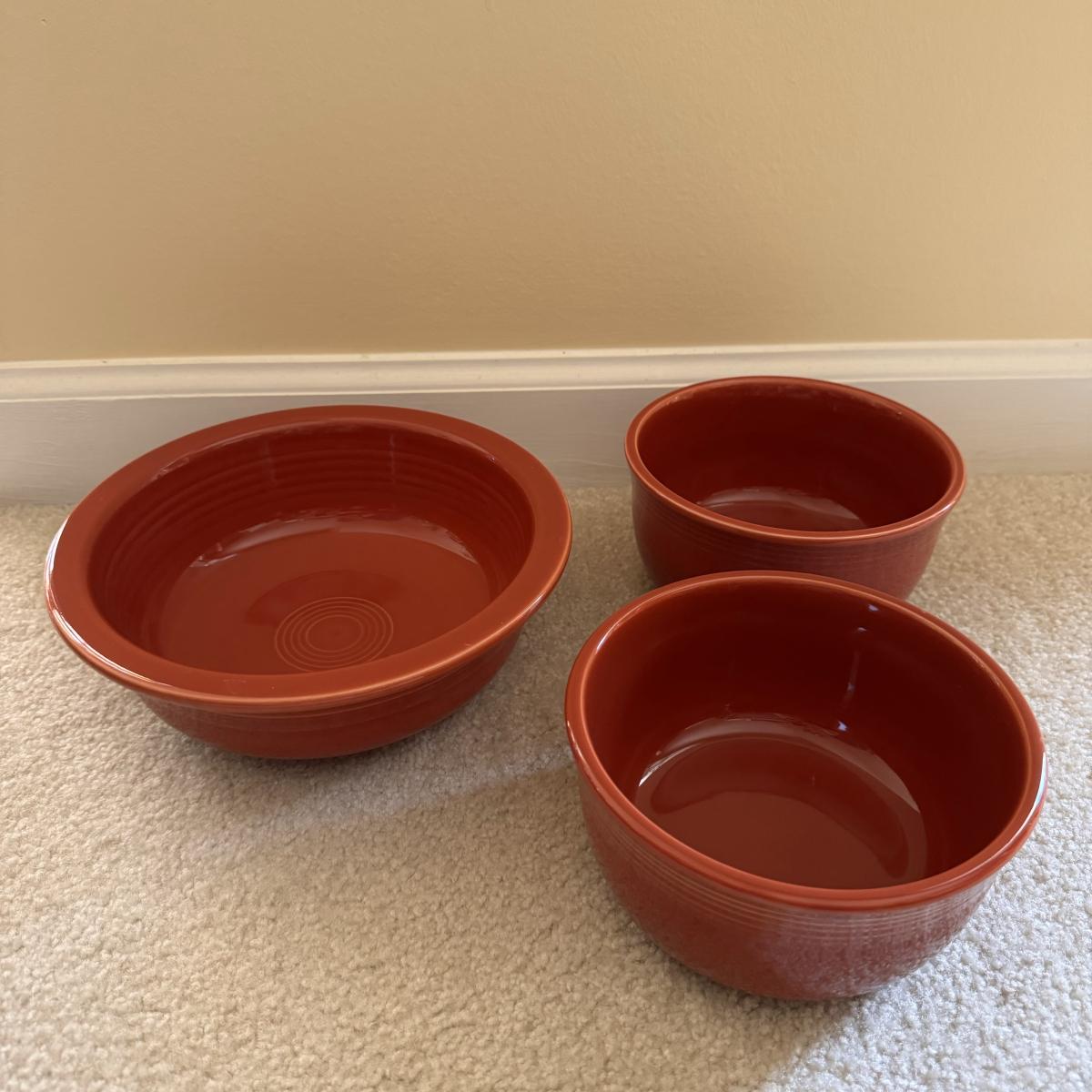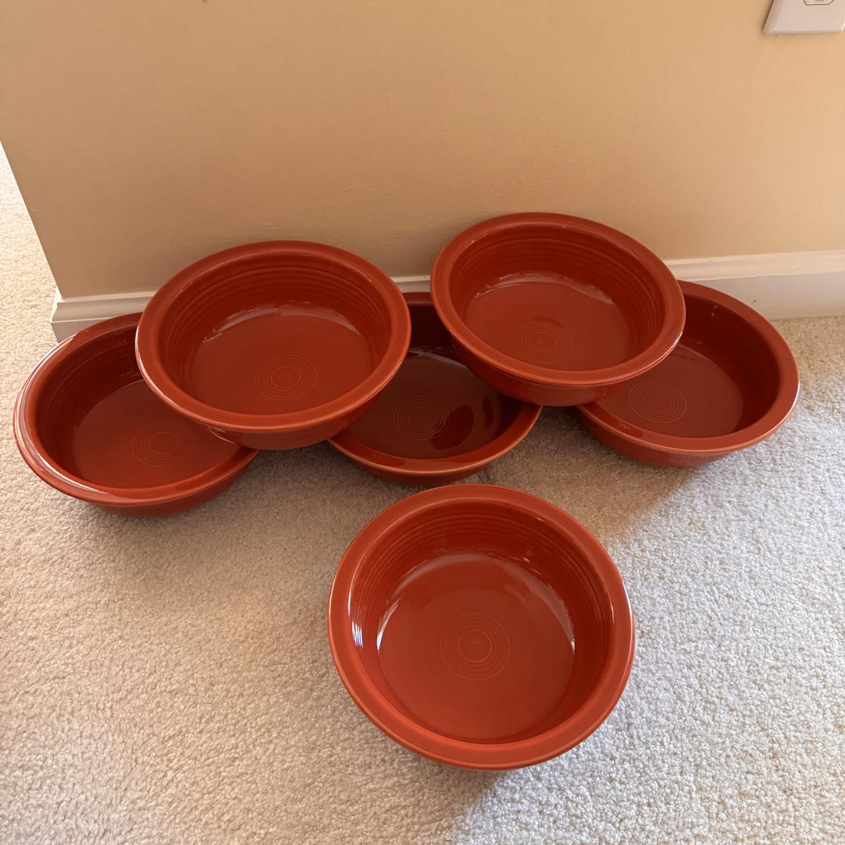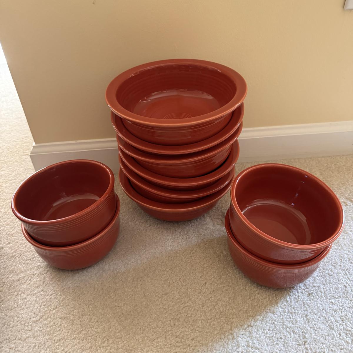This lot of Fiestaware dishes includes six large bowls and four small ones. The larger bowls individually measure 8.5”D x 3”H and the smaller 6” x 3”D. Shipping available.