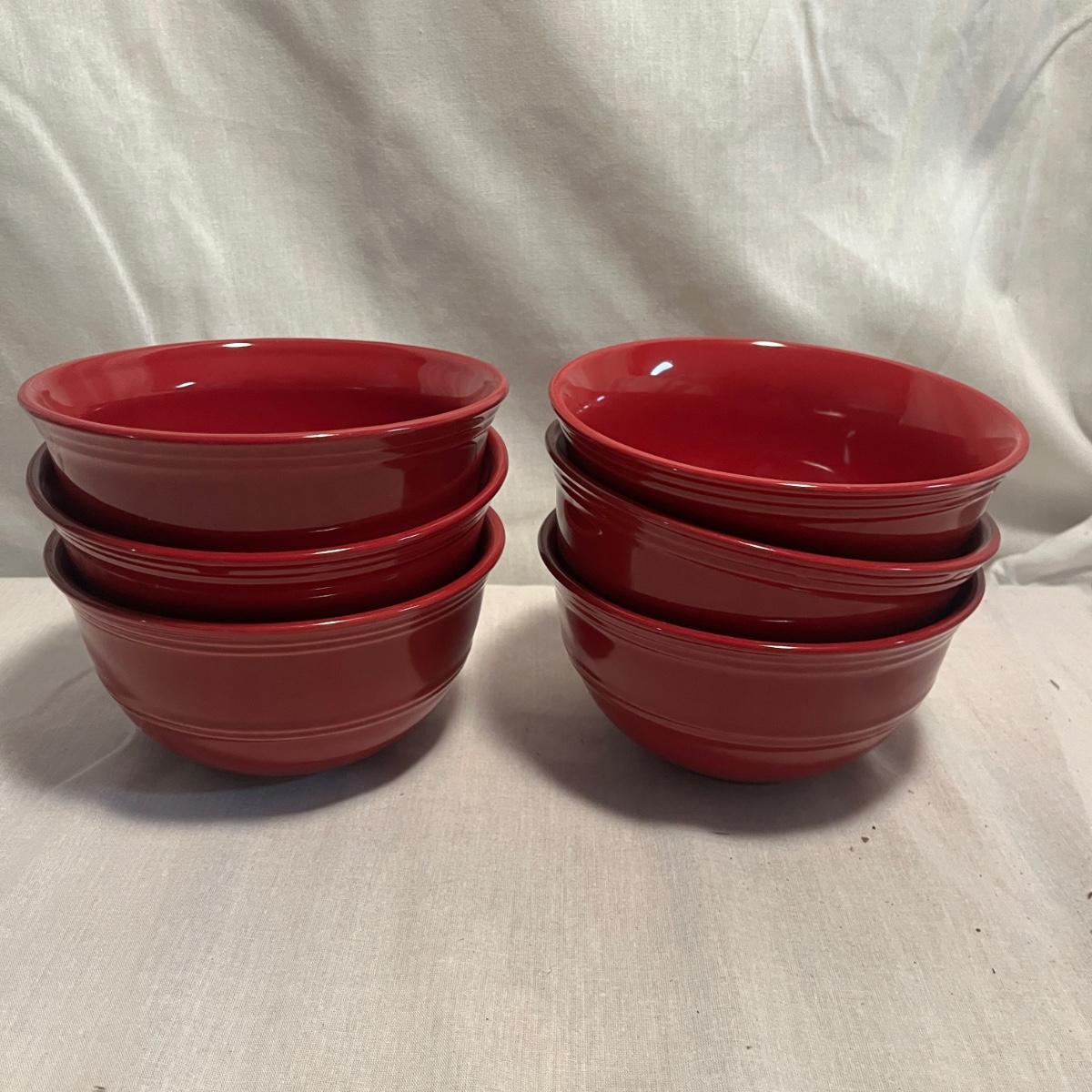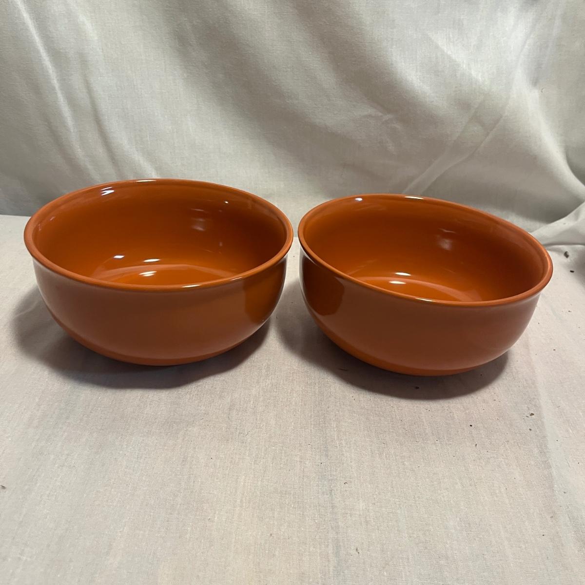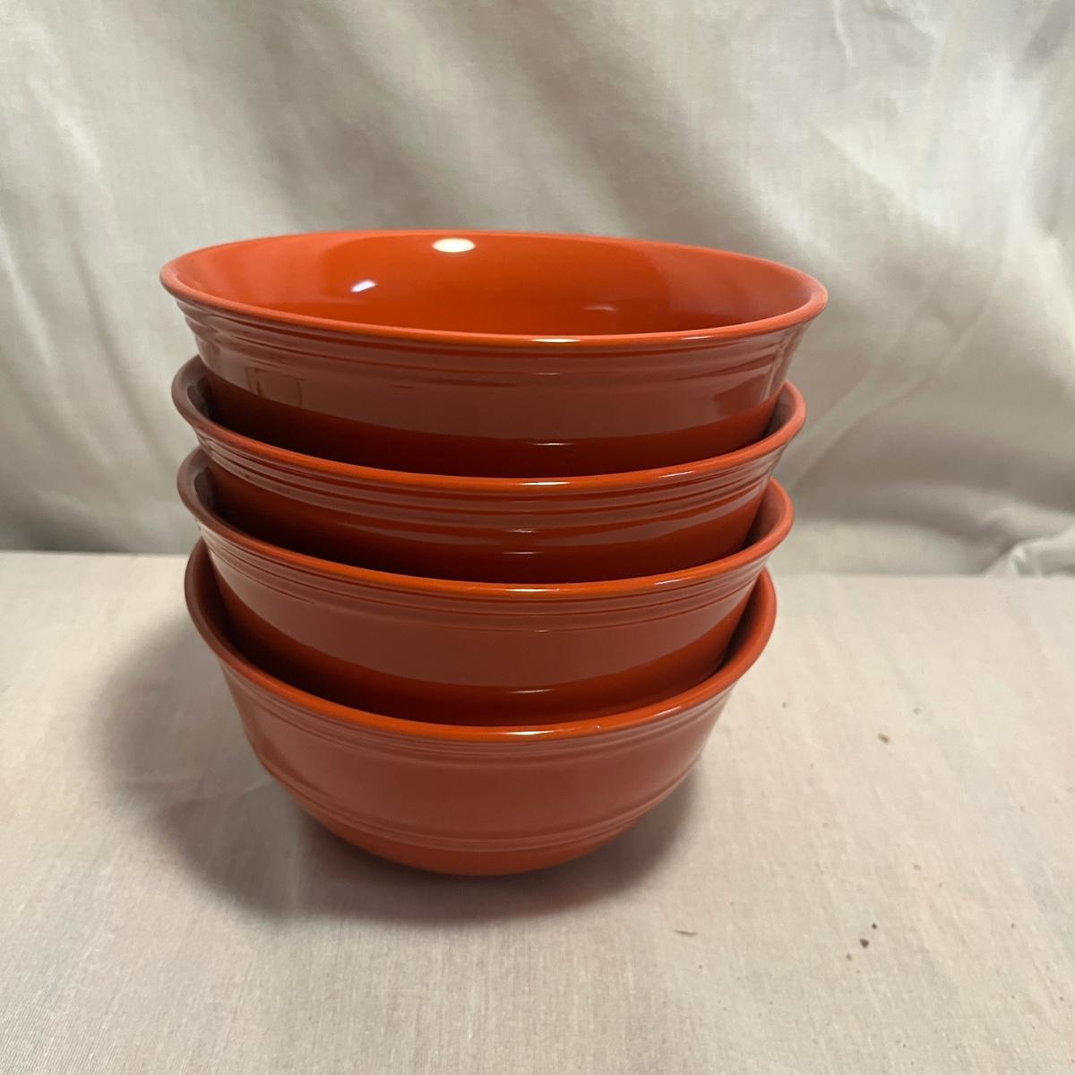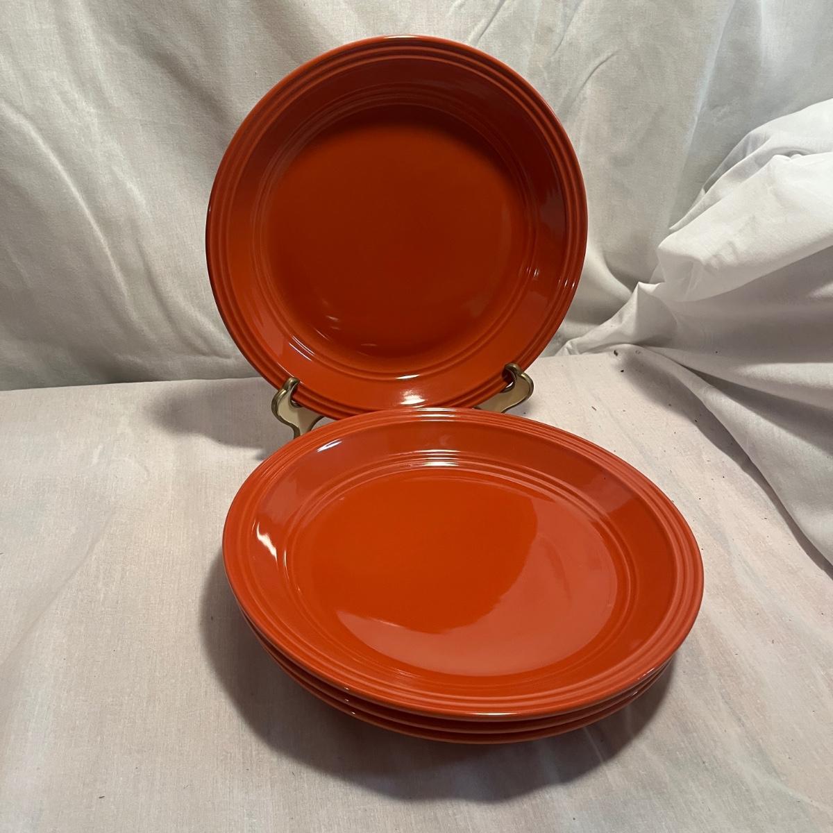 Lot includes four Fiestaware plates, 10 Mainstay bowls, four Mainstay plates, four Waechtersbach plates, four unmarked plates and two Royal Norfolk bowls. Fiestaware plates measure 10.5”D.