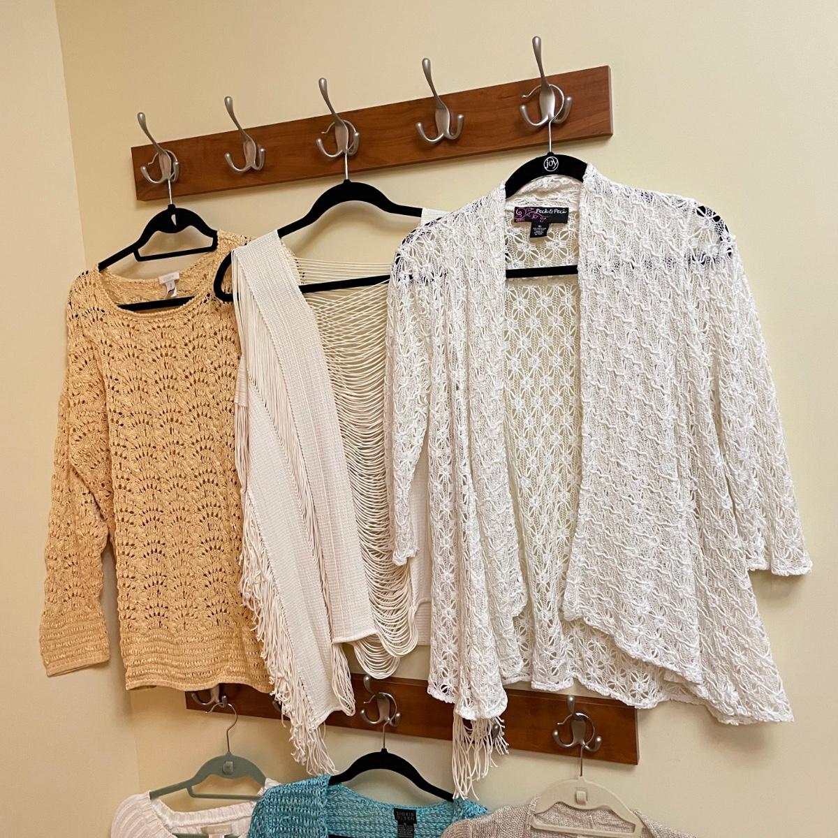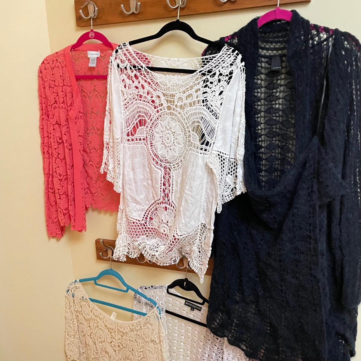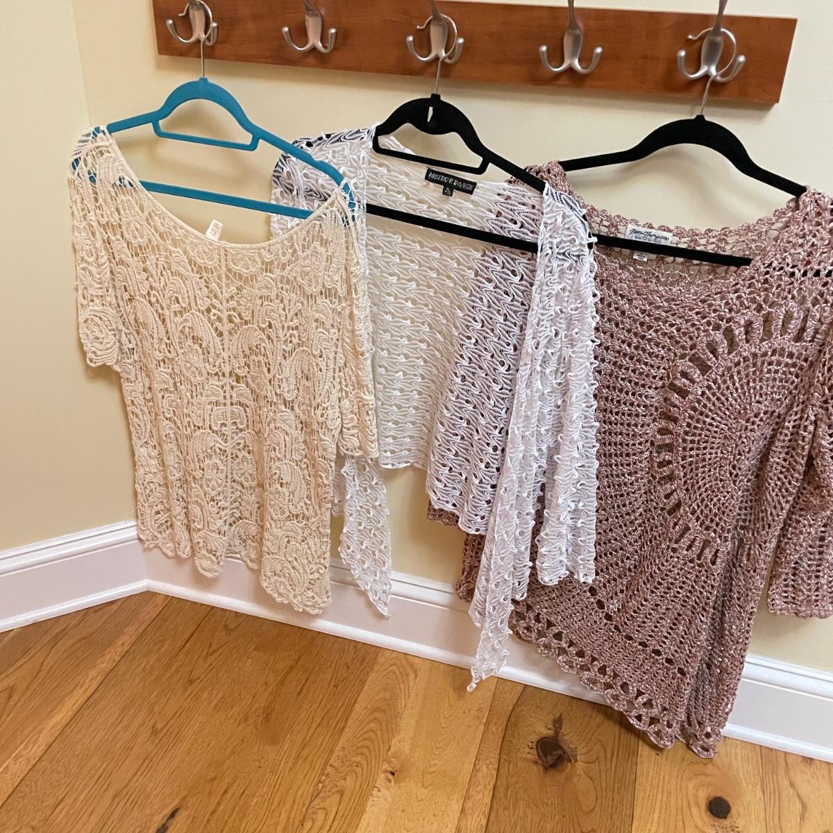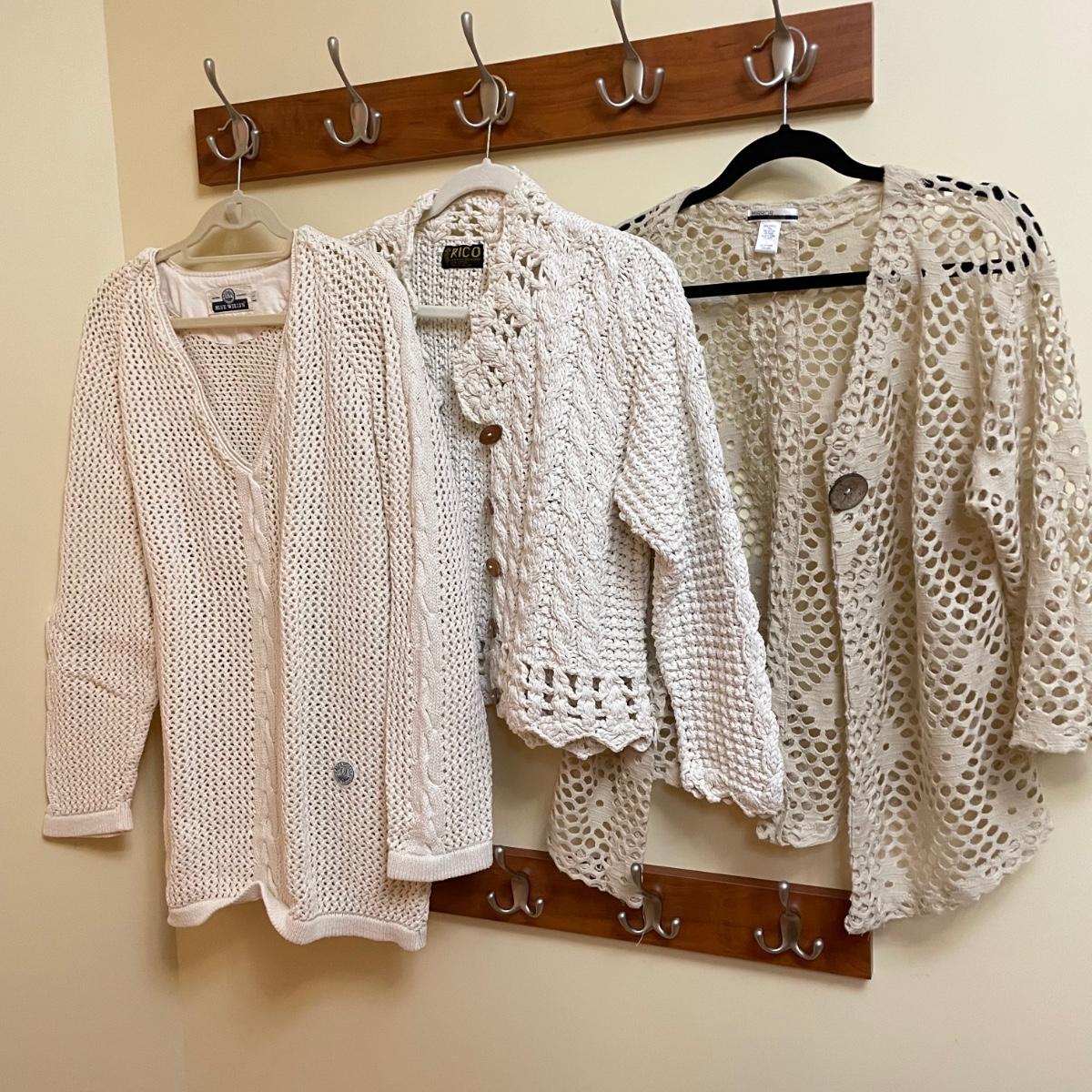 A collection of 15 knit tops ranging from casual to elegant in a variety of colors. Brands include Norm Thompson, Rico, Blue Willis, Marks & Spencer and More. See images. Shipping available.