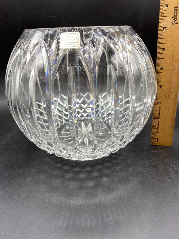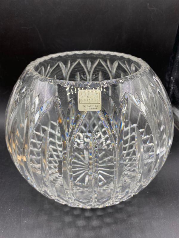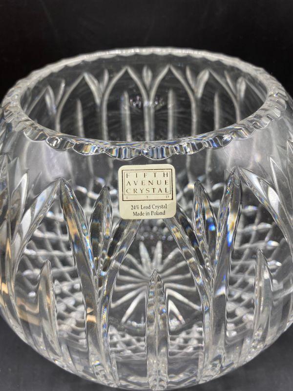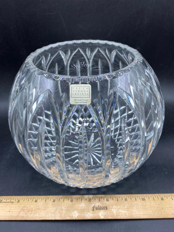 Beautiful lead crystal bubble bowl by Fifth Avenue Crystal. Heavy bowl. Simple but elegant cut. Great condition, displays nicely. Has original sticker attached. About 7" tall.