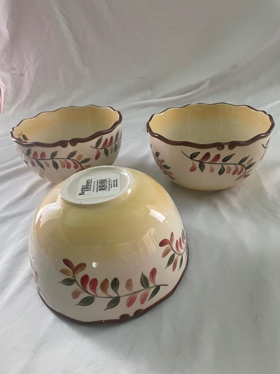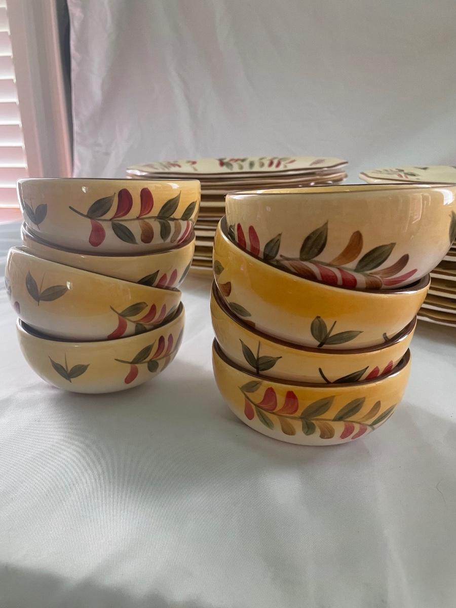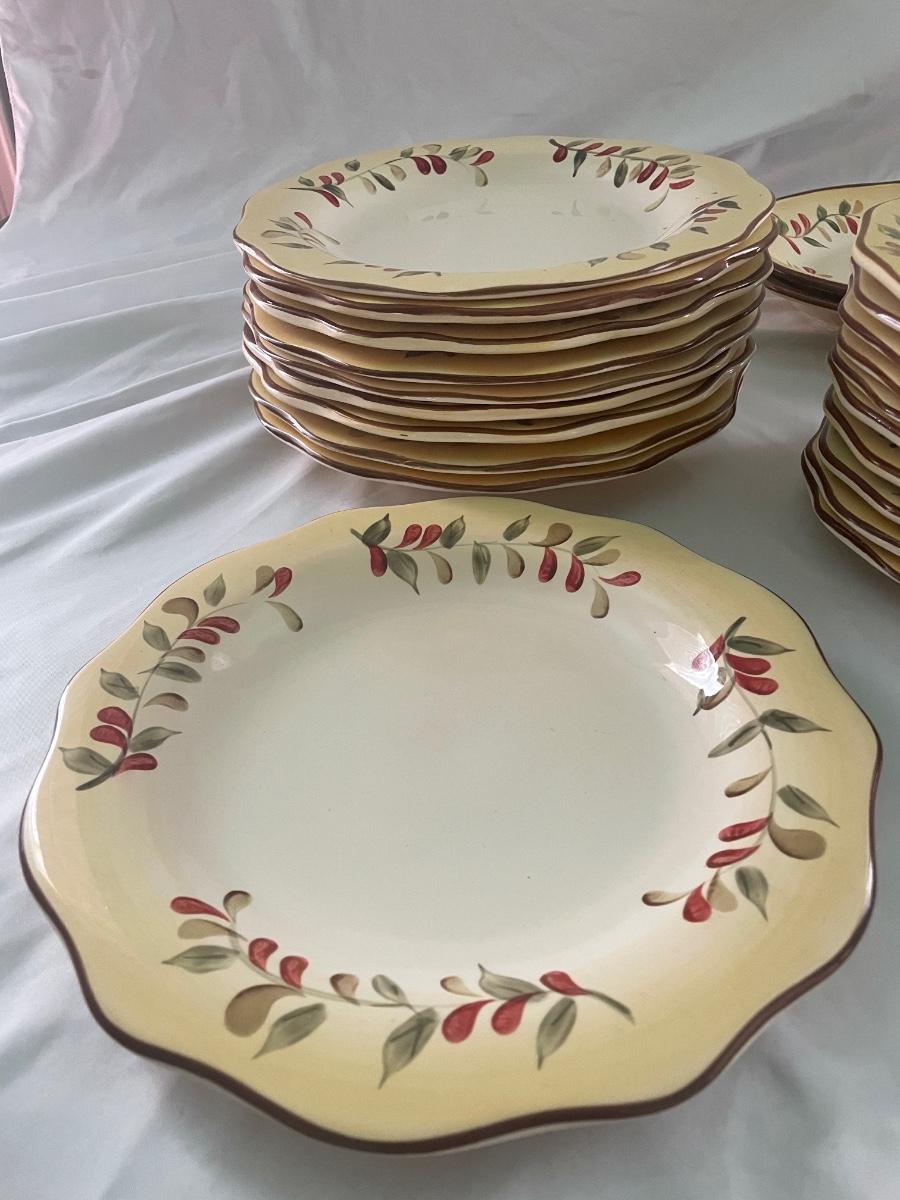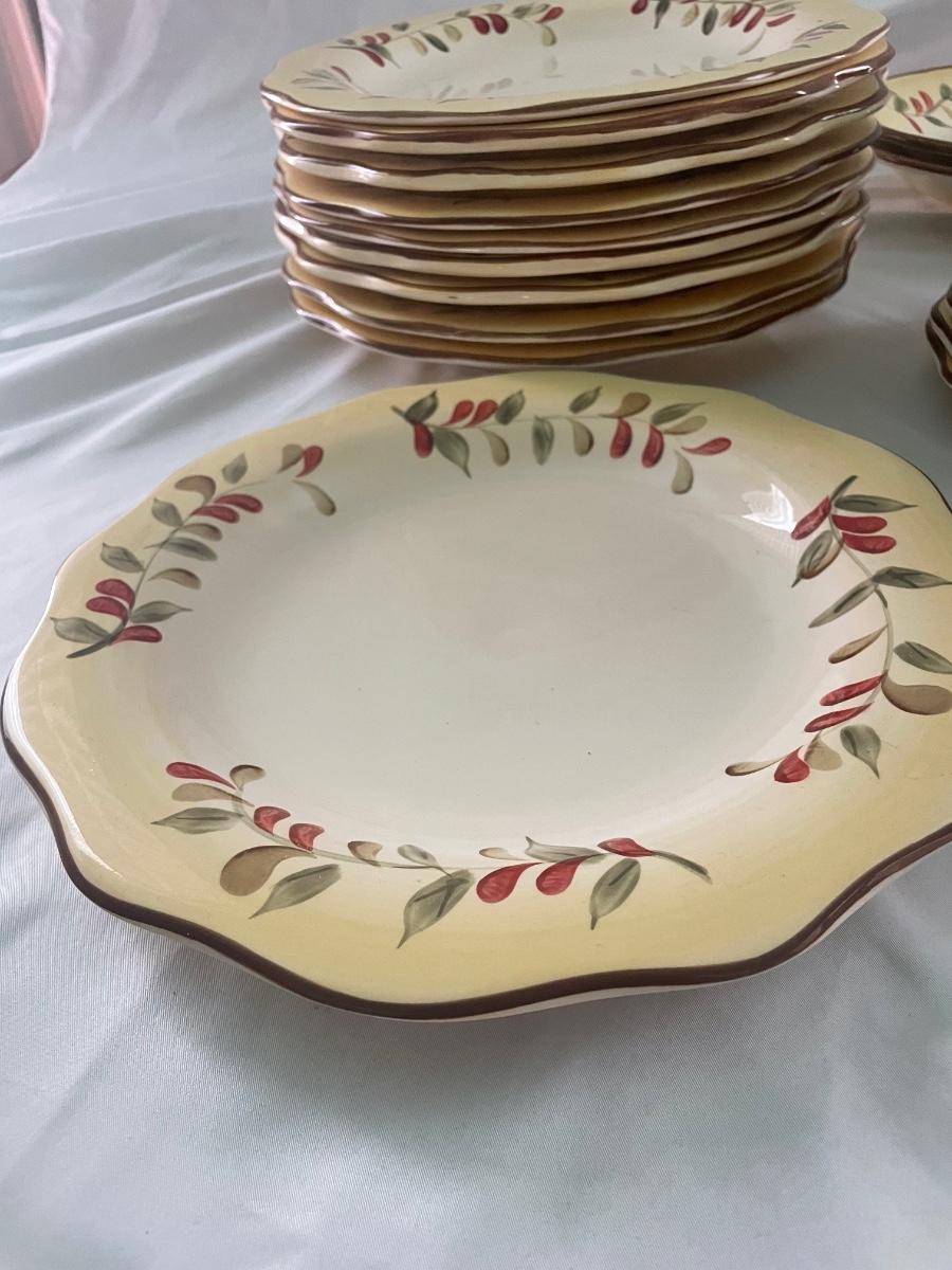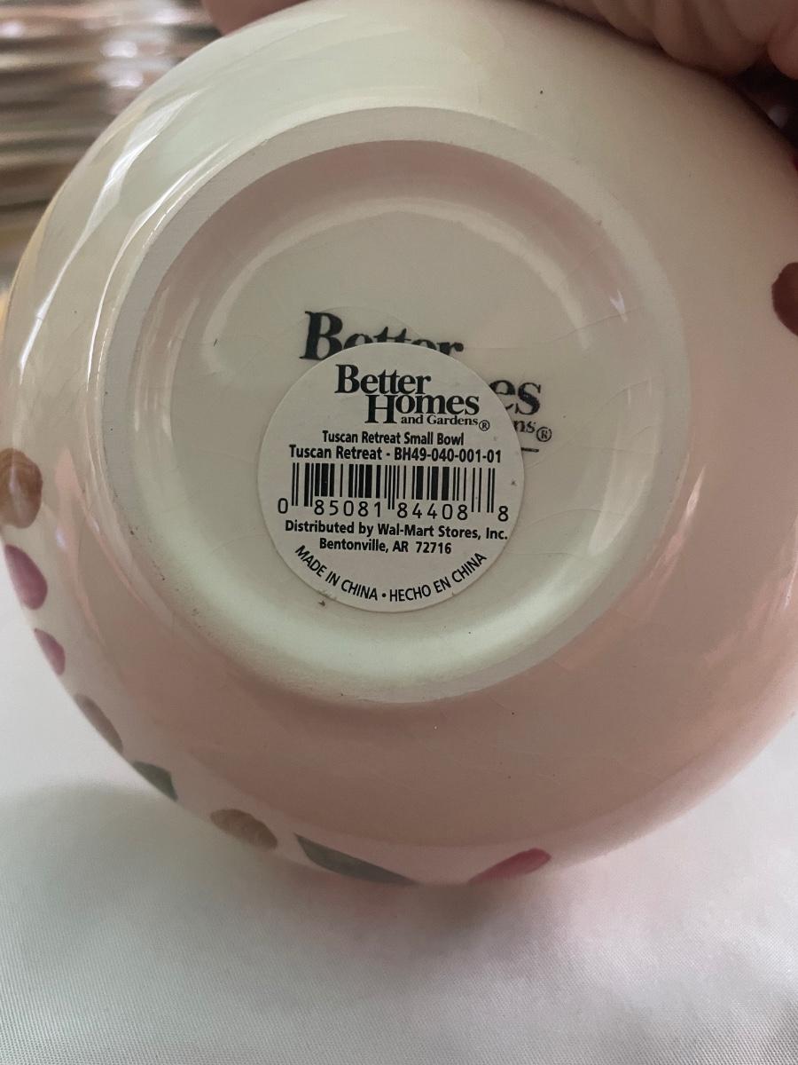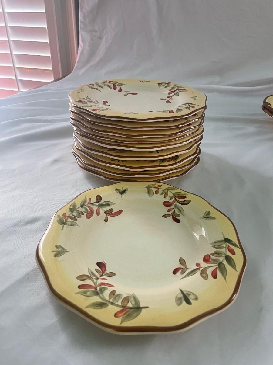 This matching Better Homes set is Tuscan Retreat design ceramic ware. All appear to have been used but are in great condition, just one cup has a chip in the base, see image. Set includes - 12 cups, 3 serving bowls, 2 large platters, 8 small and 10 big bowls, 10 side and 10 dinner plates (11” diameter).