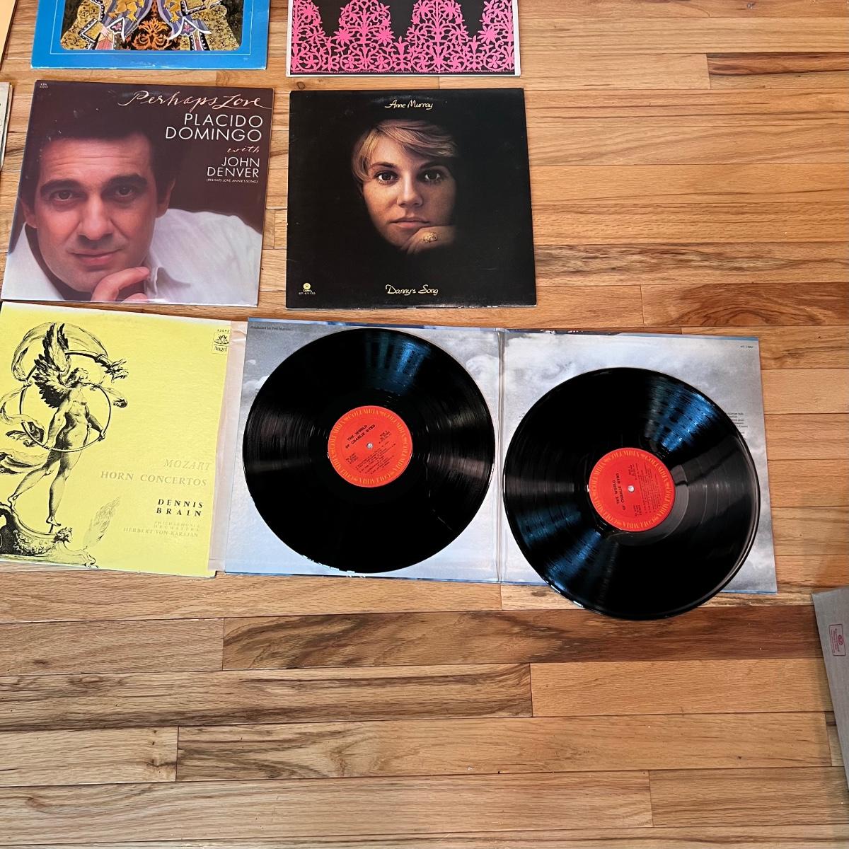 Huge vinyl lot includes multi genres that includes classical, country and more, see images for all titles. We pulled a few to check condition was good, but not all. The Aiwa PX-30 turntable powers on but doesn’t turn. It measures 13” x 13” x 3”H.