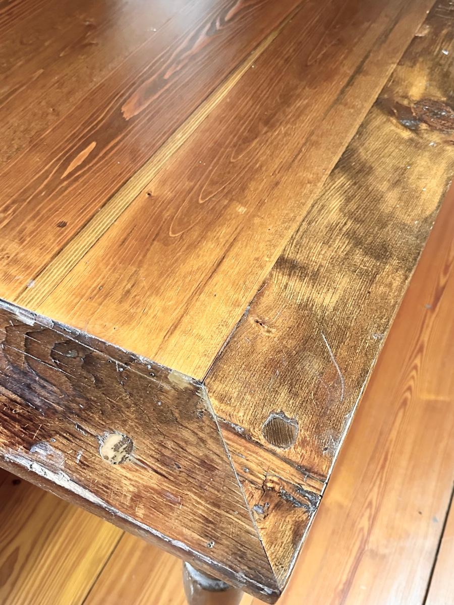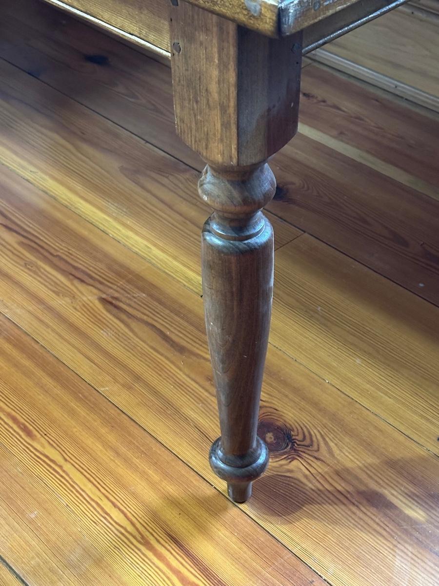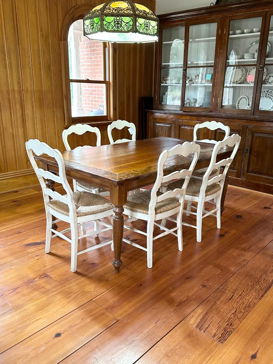 This beauty has been made with old barge wood. Unfortunately, I was not able to capture the beauty of its color due to the lighting in the home. The color is brown with a tint of red ~ I took a picture of it as it was used in the home. Chairs sold separately ~ 30” H x 71.5” x 41”