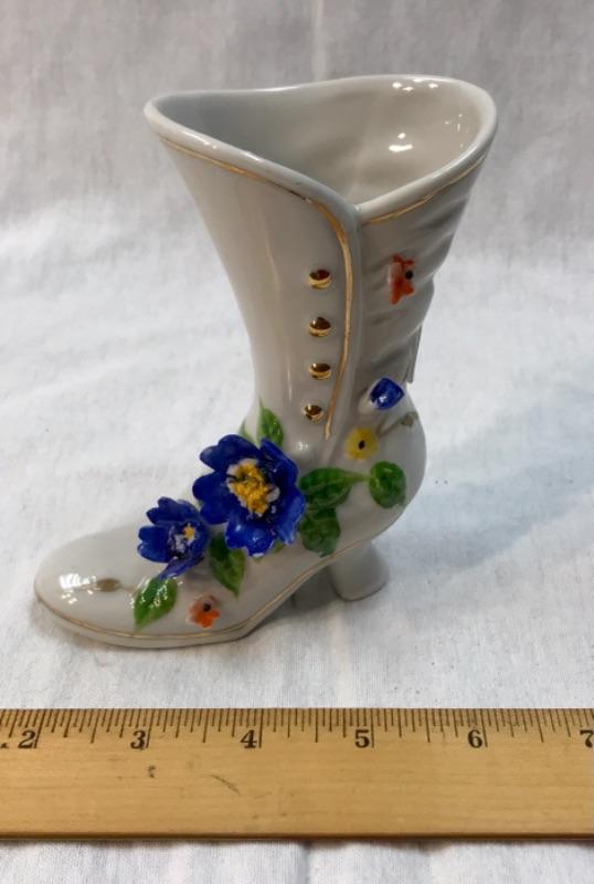 Vintage porcelain boot figurine. Victorian style shoe adorn with flowers. Good condition.