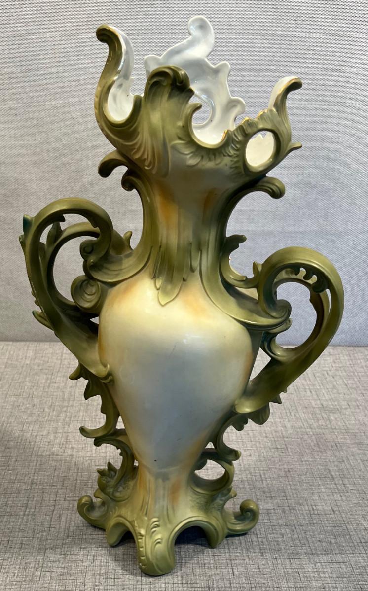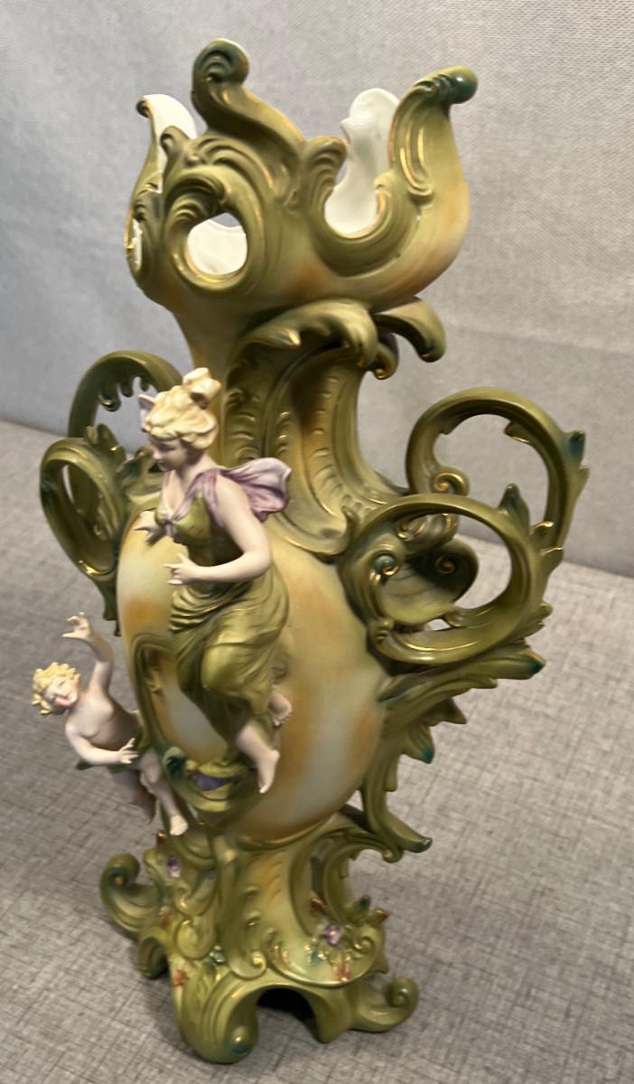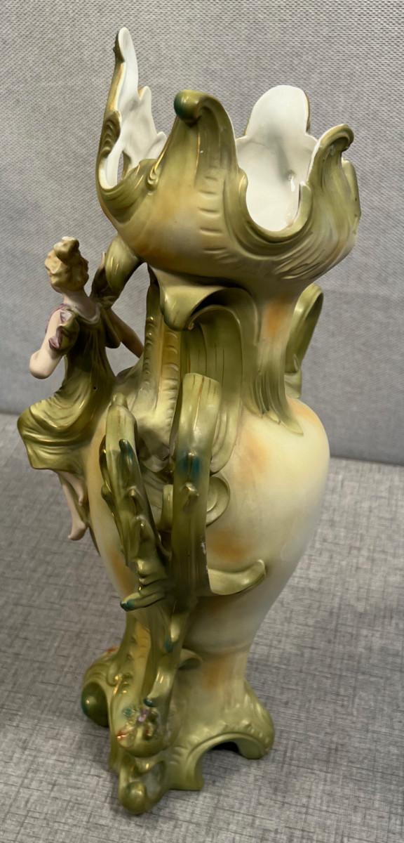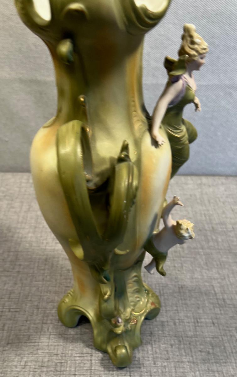 Figural Art Nouveau Vase German Origin, marked "Saxony" c.1900. Excellent condition no chips or cracks. Stands 18" tall.