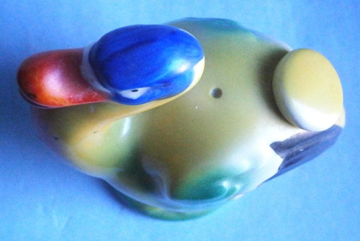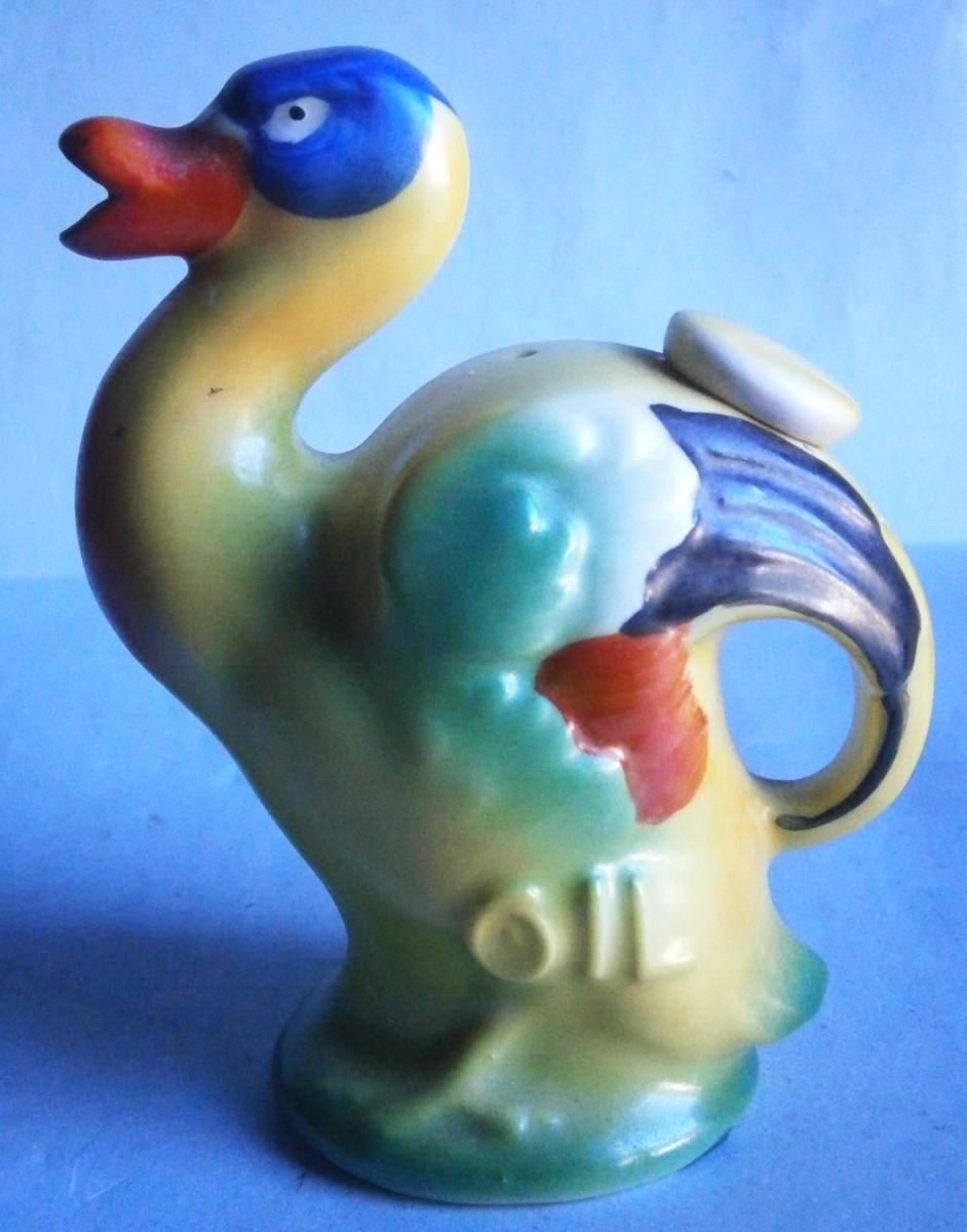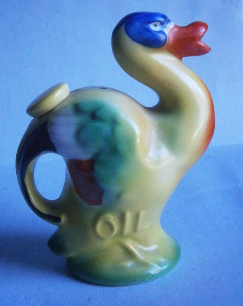 Figural Bird Porcelain Oil Bottle from the Early 1900's made in Bavaria Germany, 4 1/4 in. tall, hand decorated porcelain.