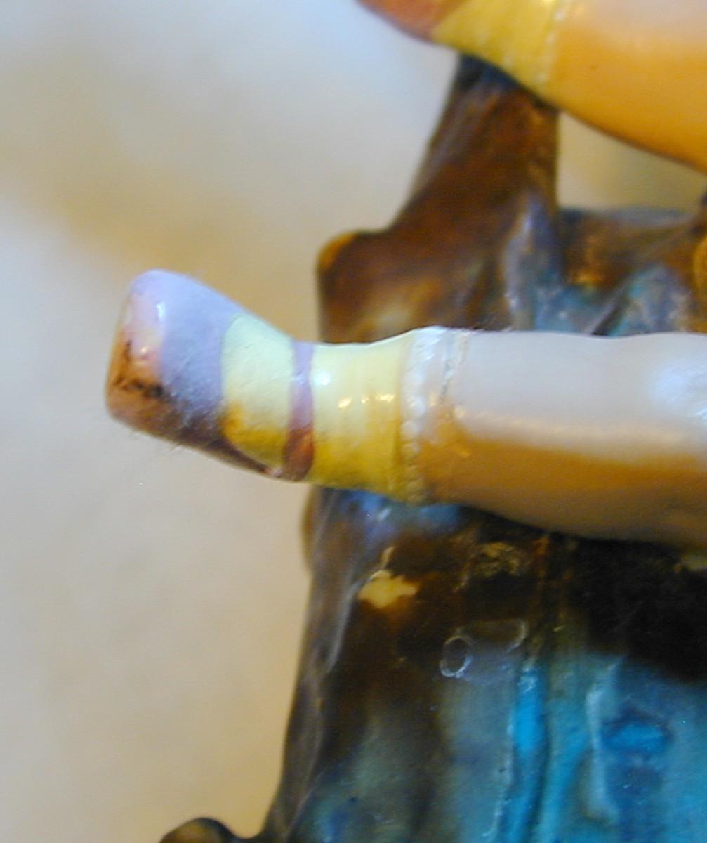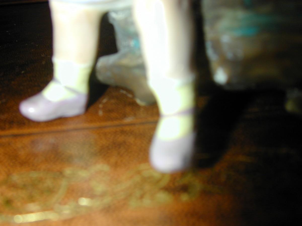 Figural Bisque/Pottery & Metal Little Girl Inkwell - 5.75 inches tall, repair to leg and a bit of damage to base behind leg