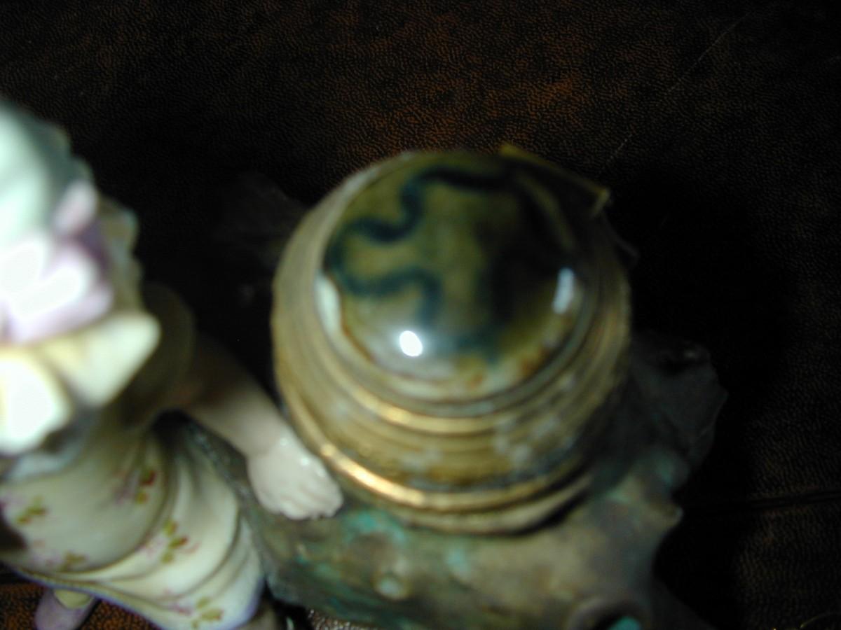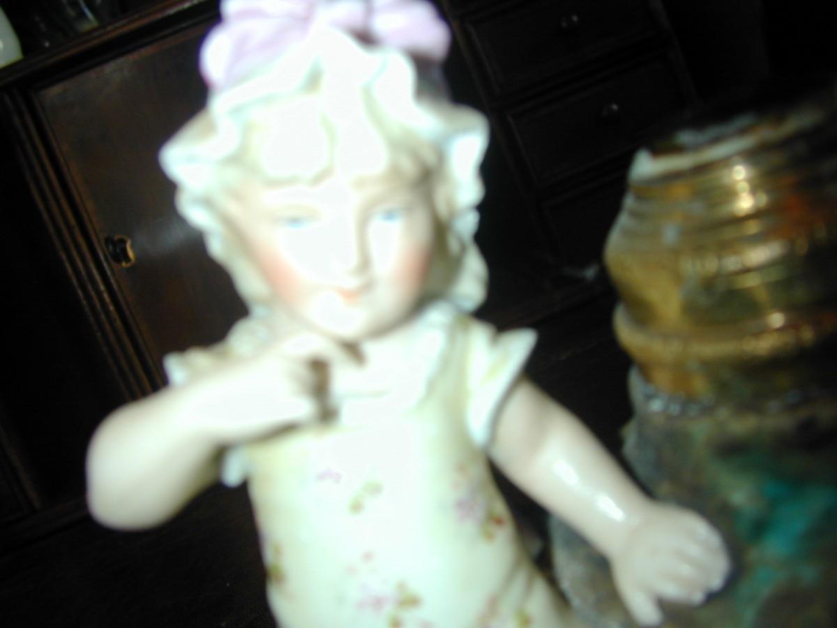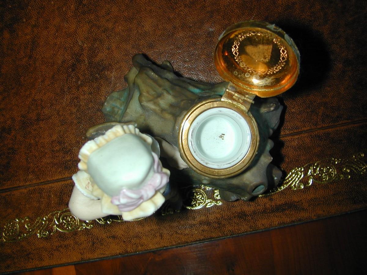 Figural Bisque/Pottery & Metal Little Girl Inkwell