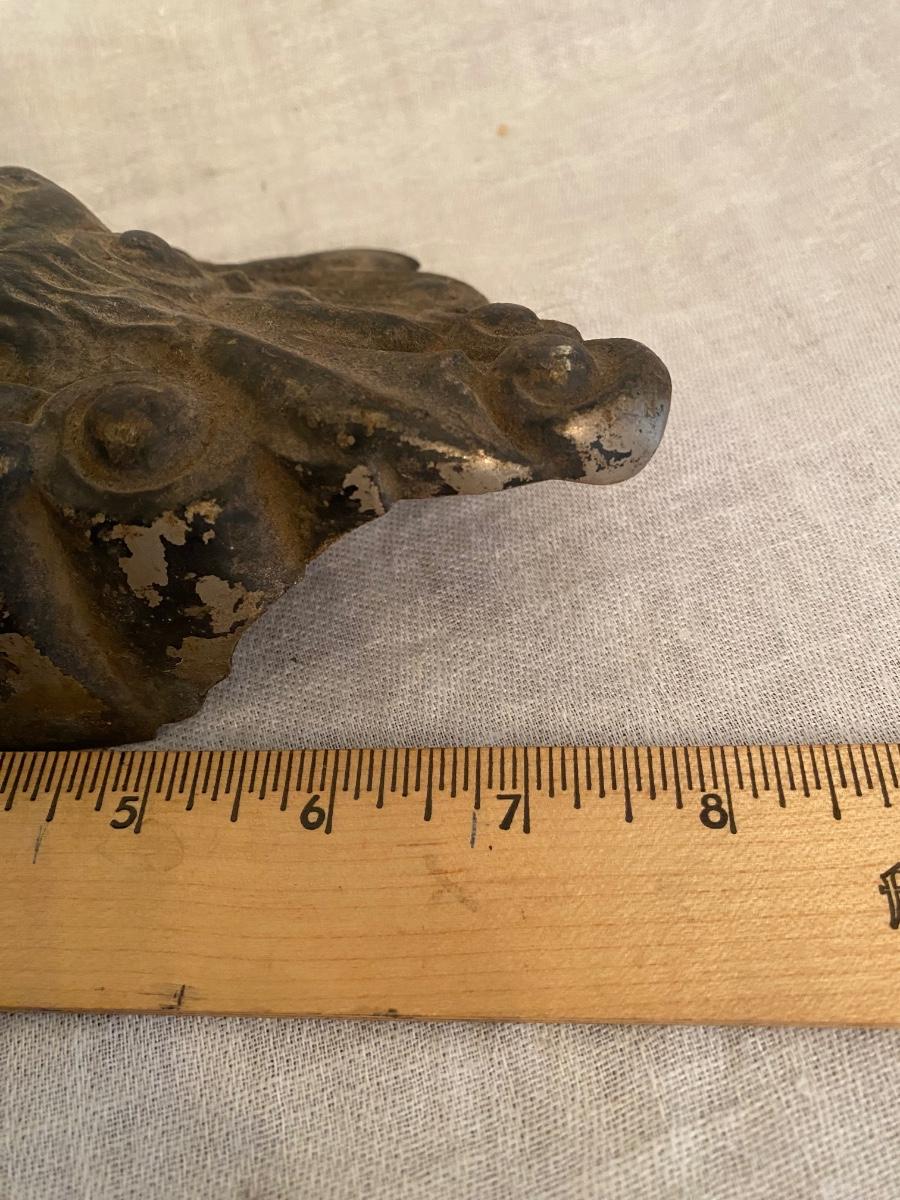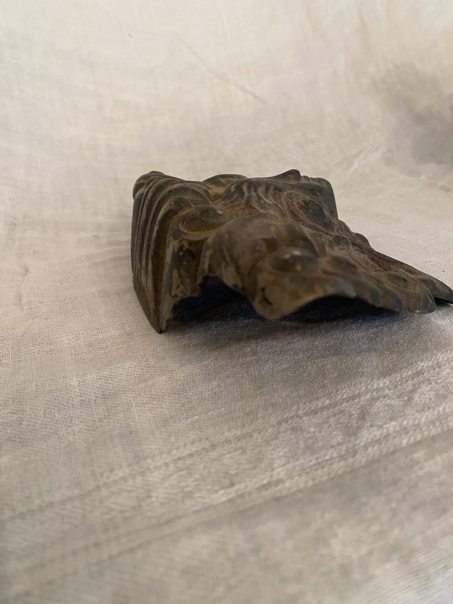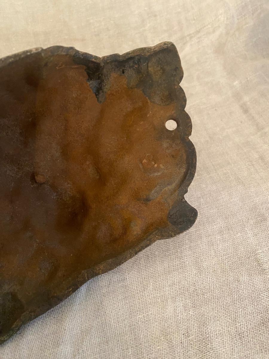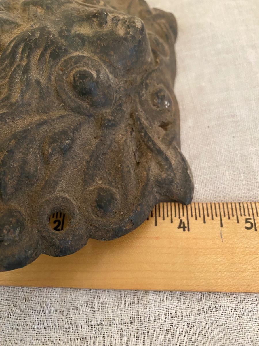 Figural Cast Iron Embossed Cherub Architectural Wall Plaque or large pull. Heavy. Cherub center. 8lx4x2D