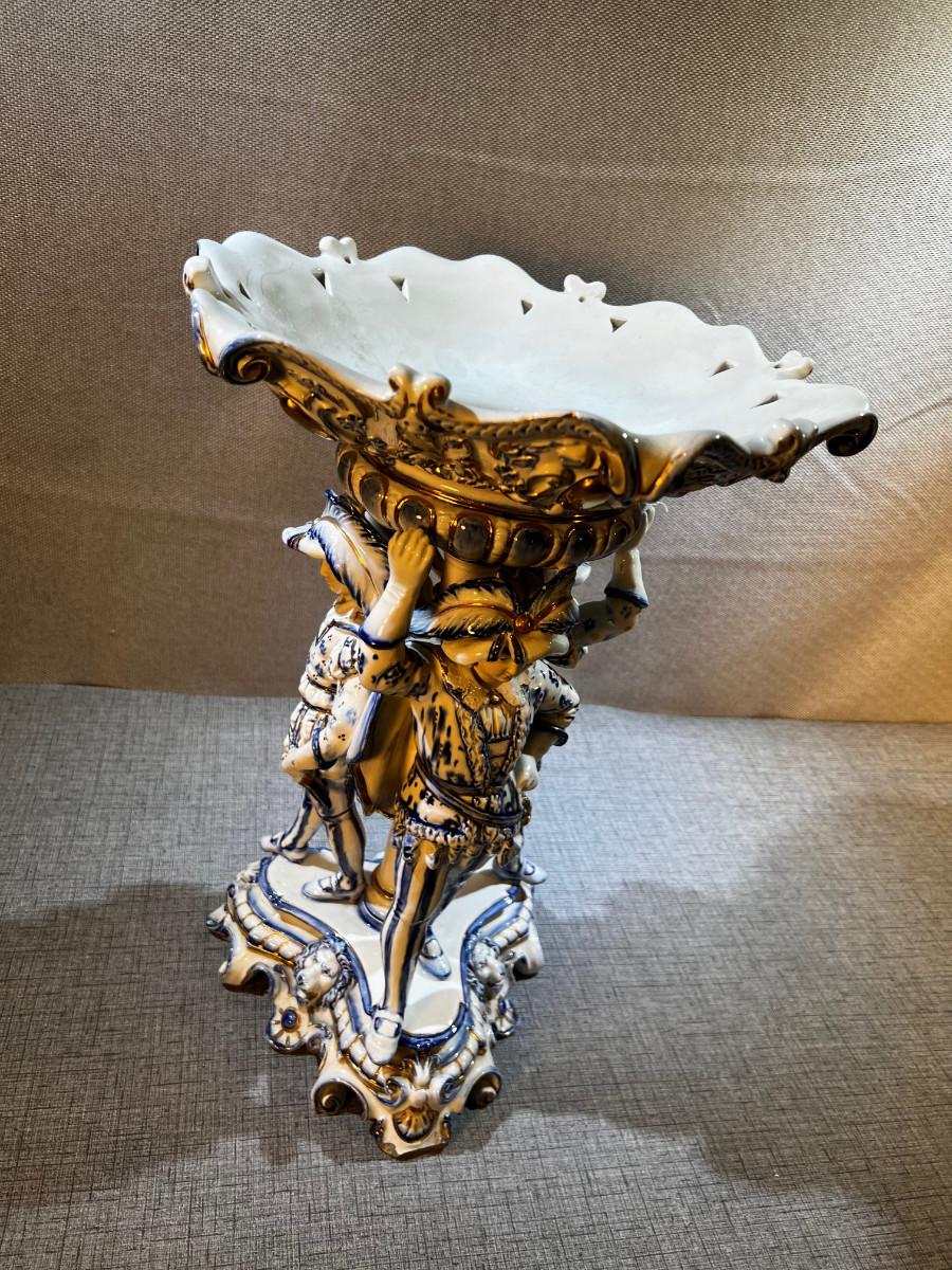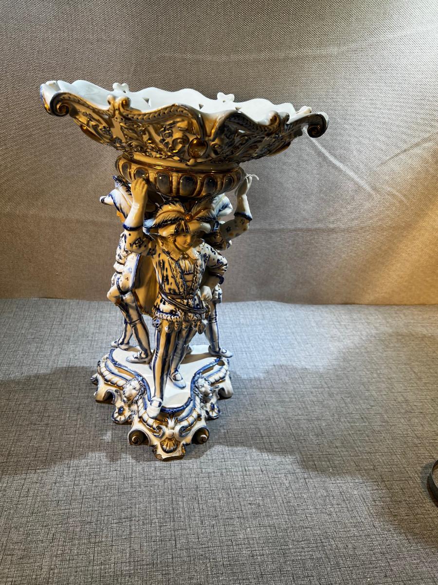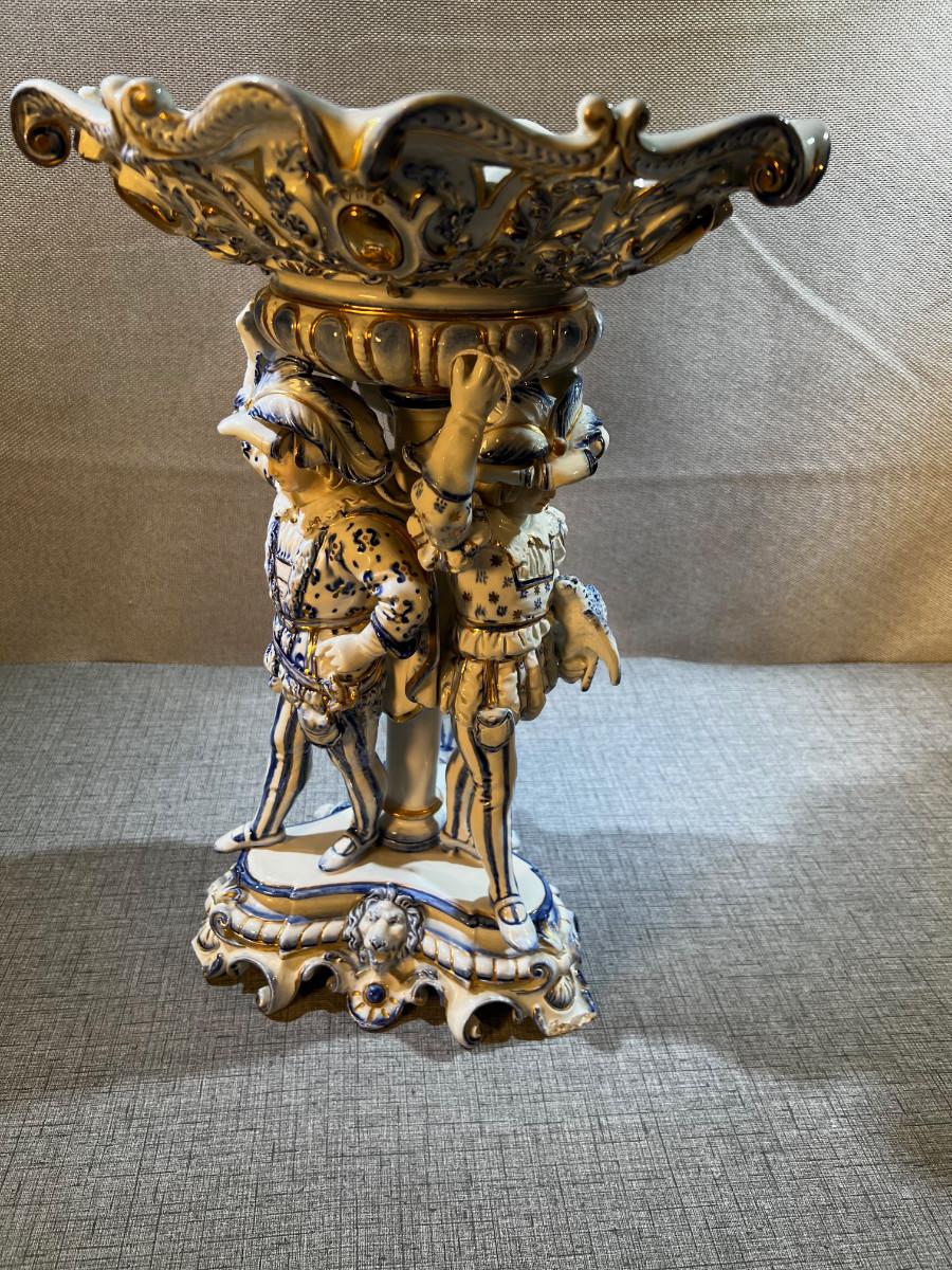 Figural Centerpiece Bowl Vase Porcelain Hunters Falconer