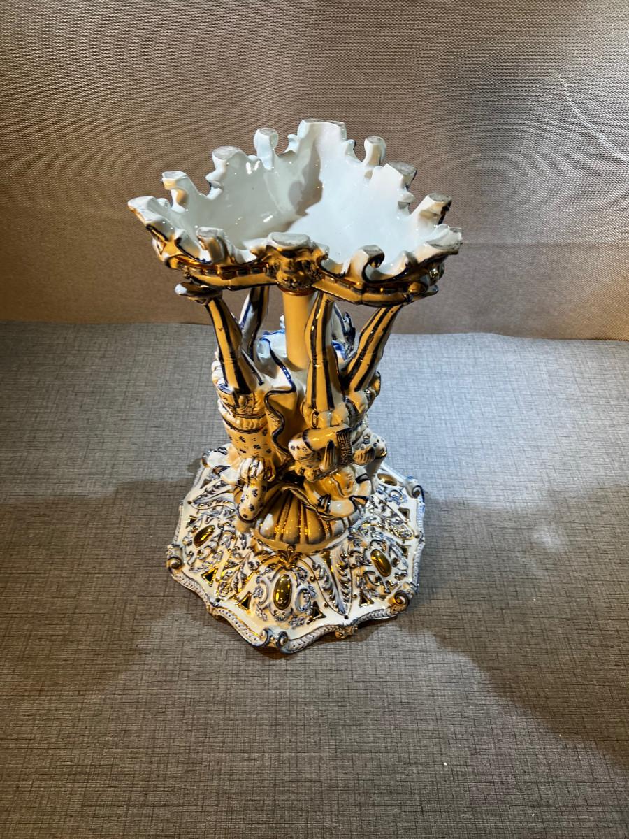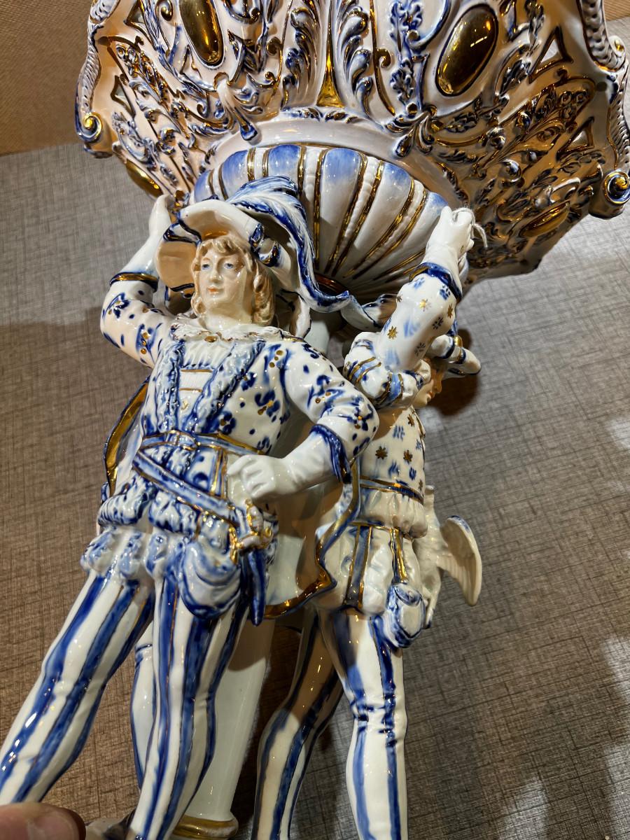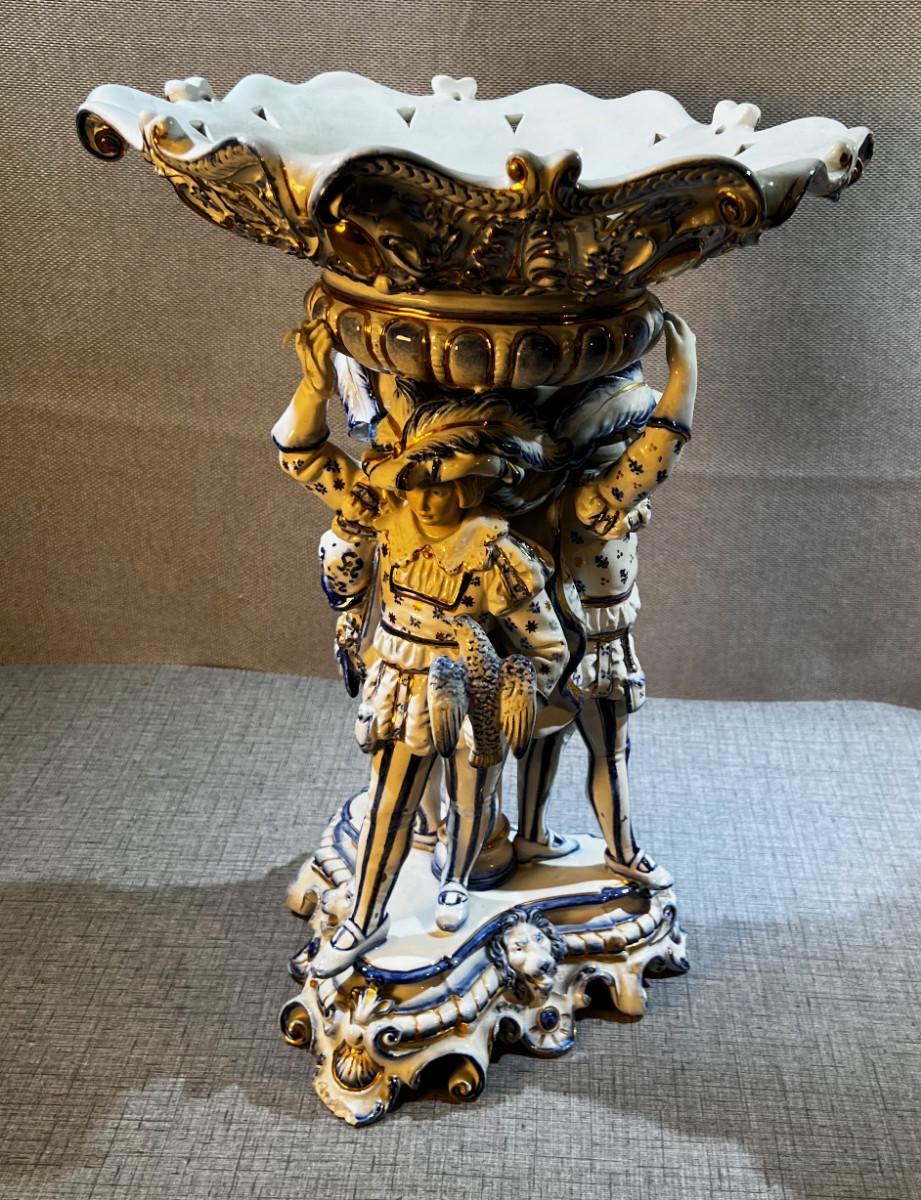 Figural Centerpiece Bowl Vase Porcelain Hunters Falconer