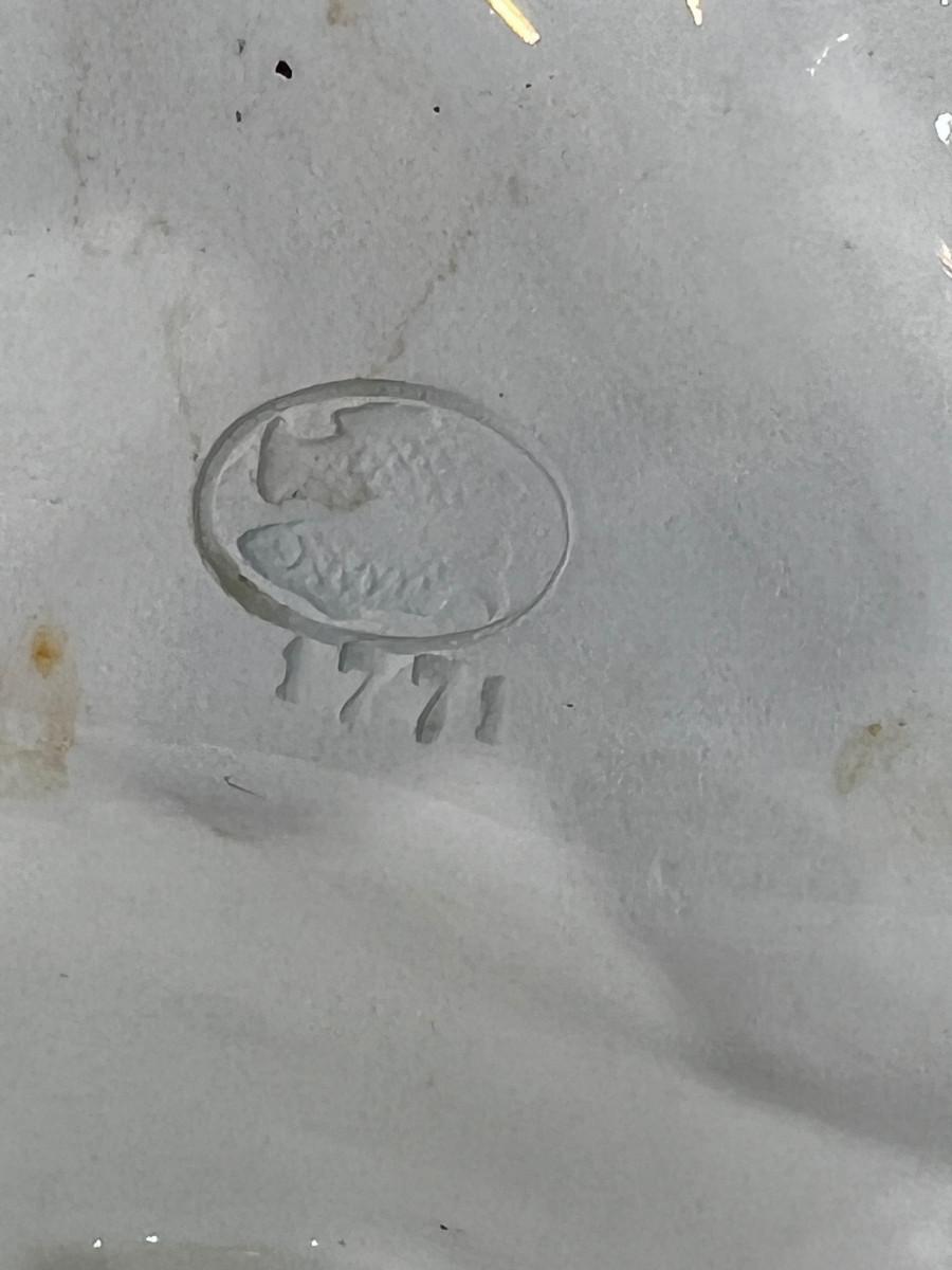 Excellent condition incised mark 2 fish(Pisces) with "1771". 17" tall no damage or repairs.