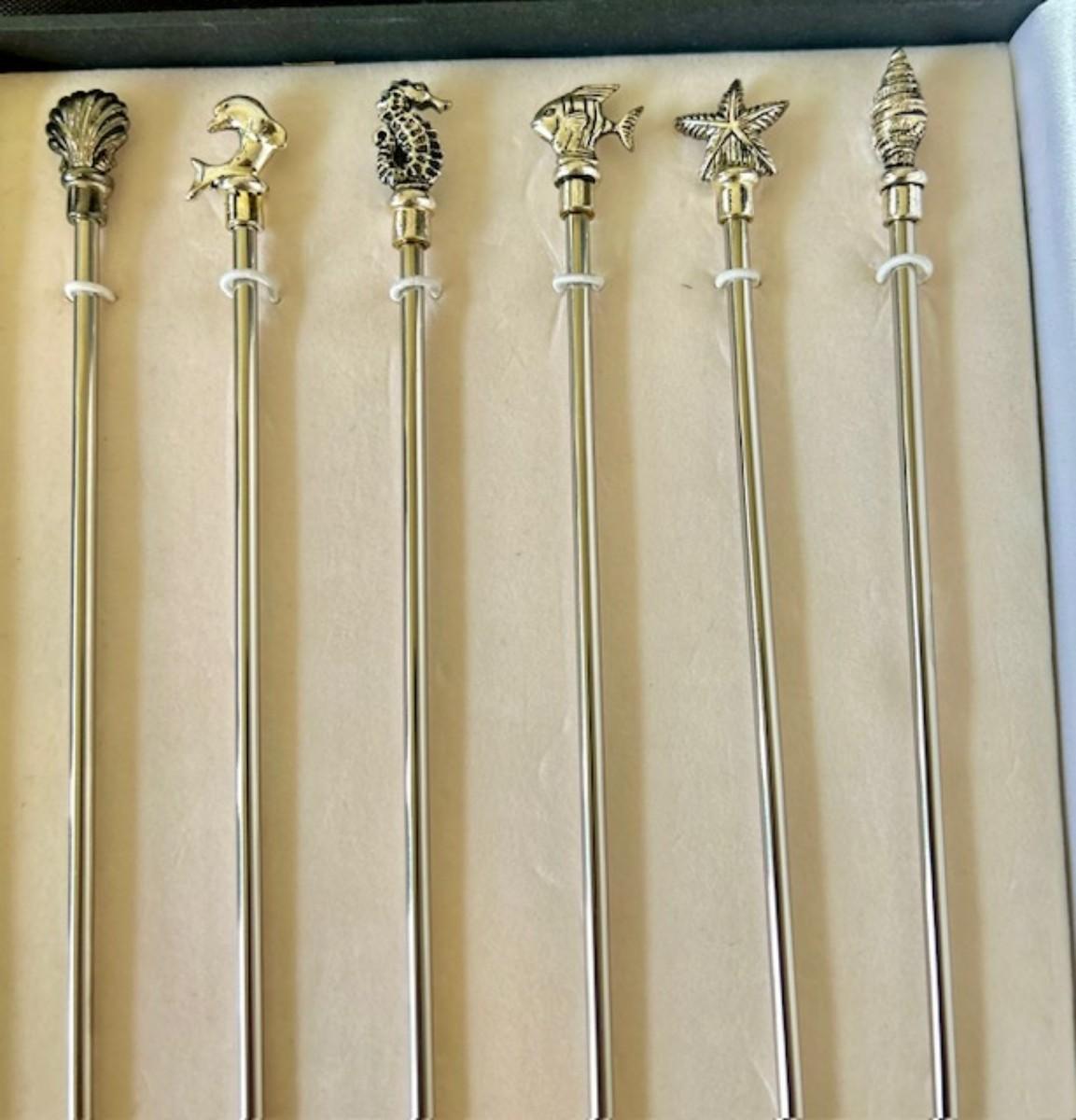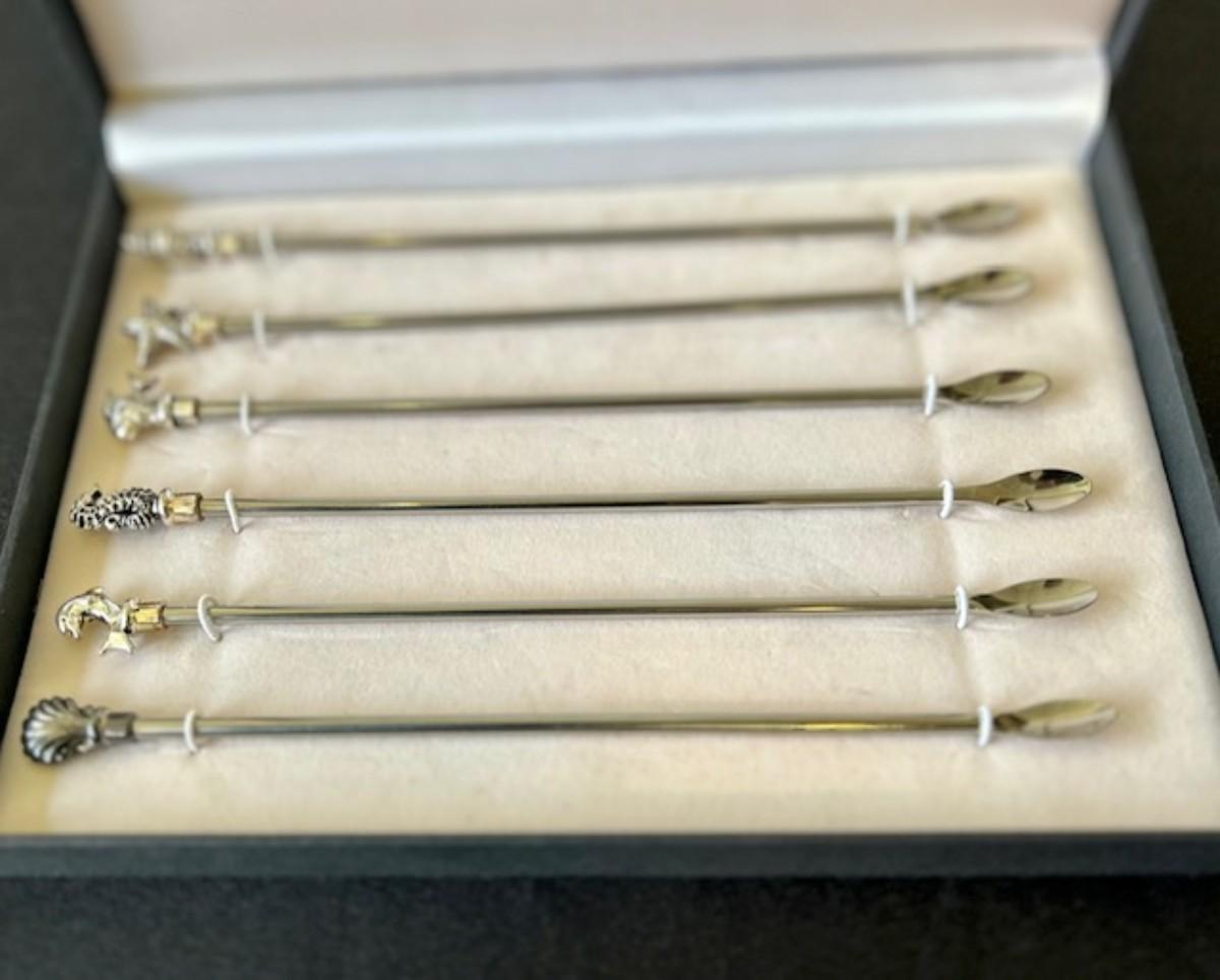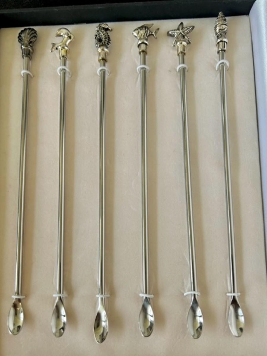 Set of 6 Stainless Coastal  Cocktail Stirring Spoons