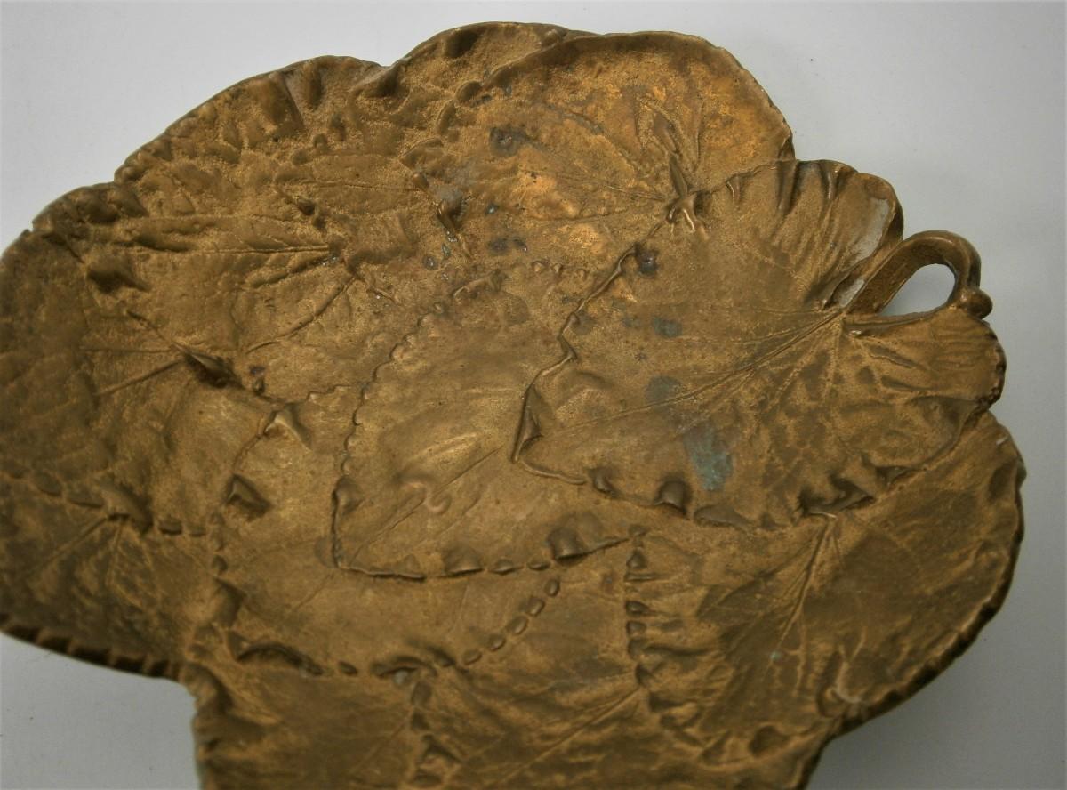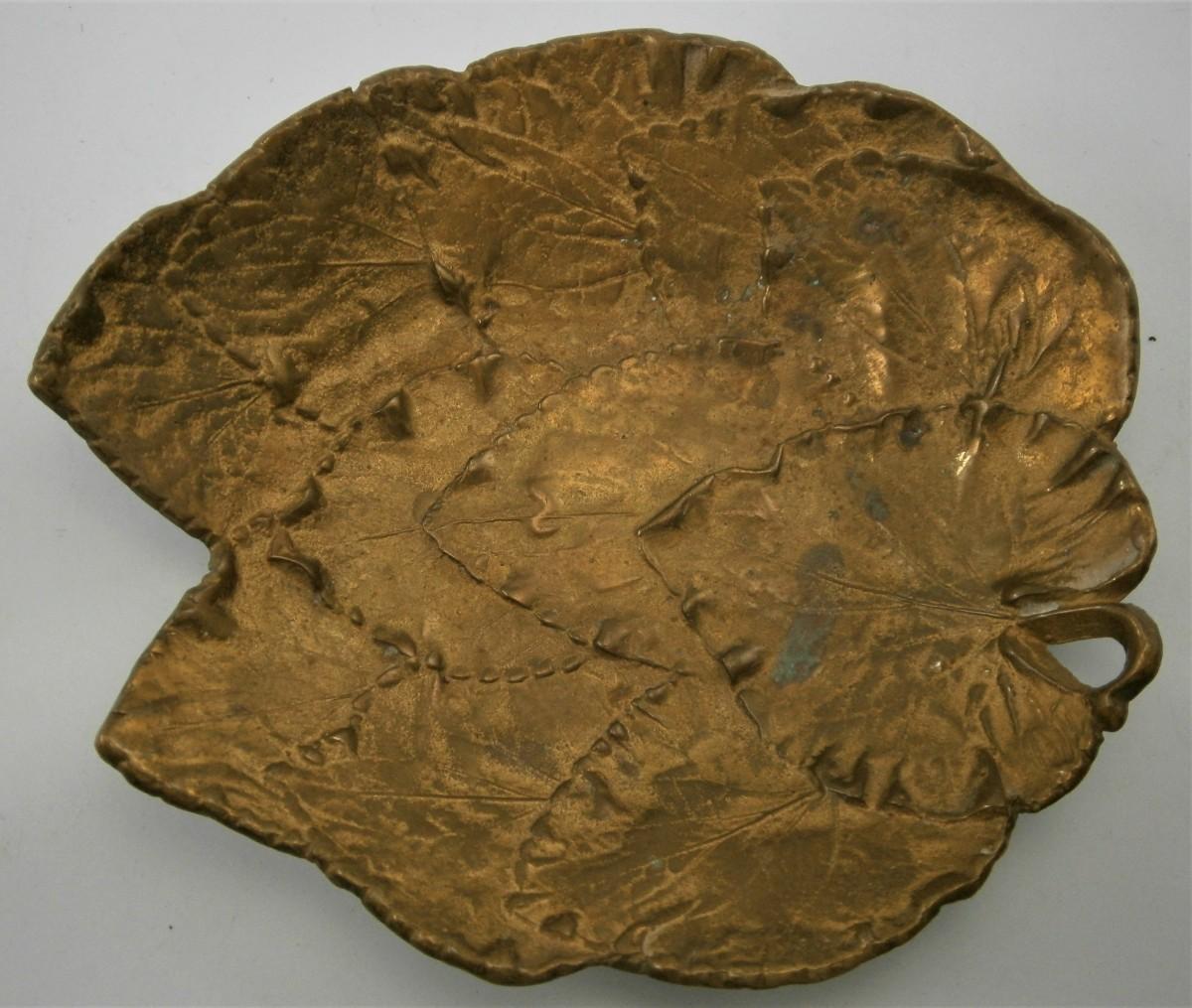 Figural Leaf Brass Pin Tray signed ""VIOLET:"