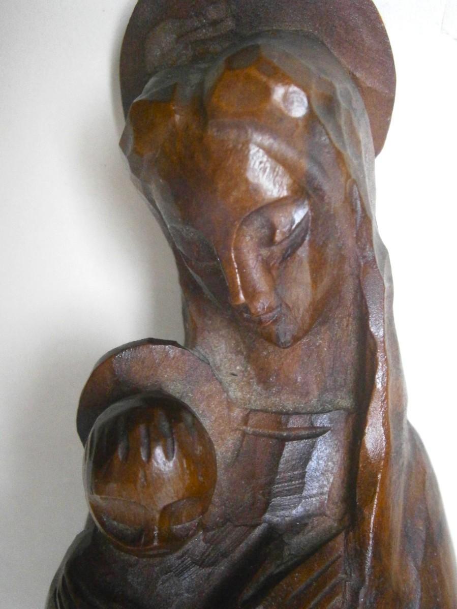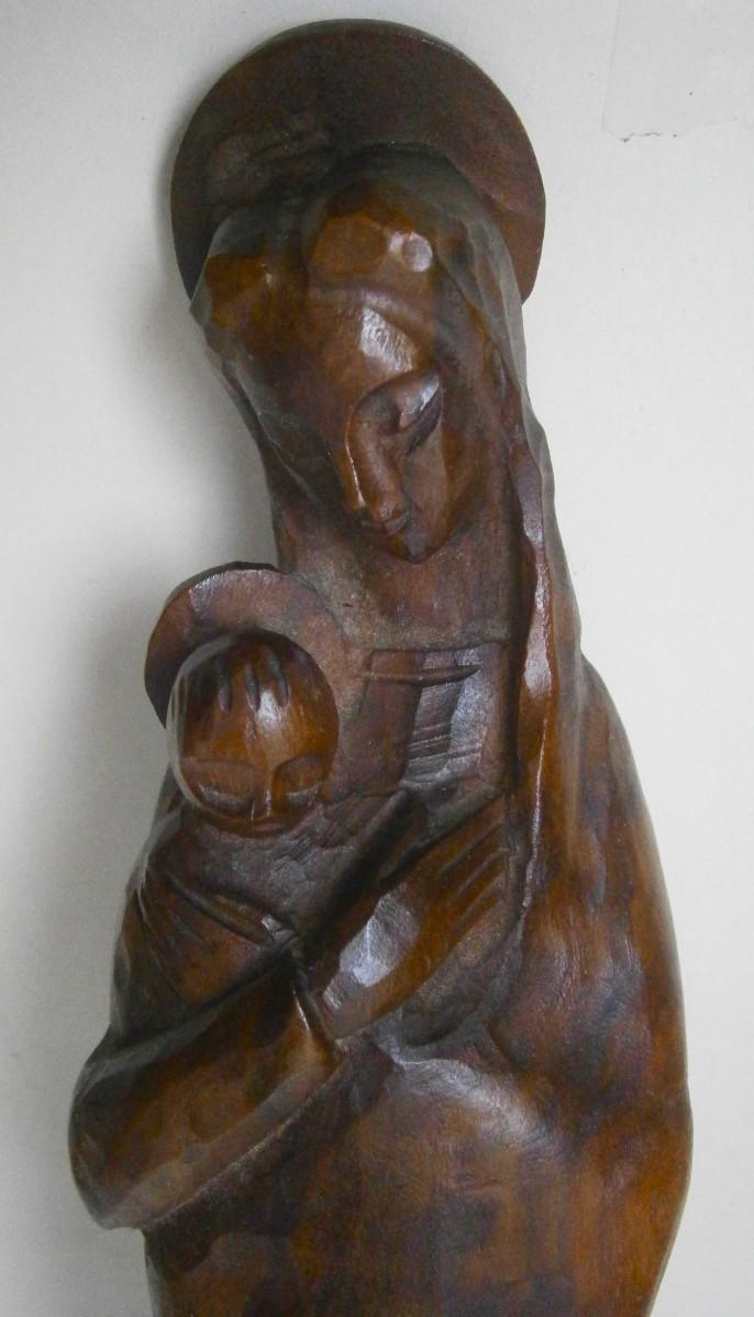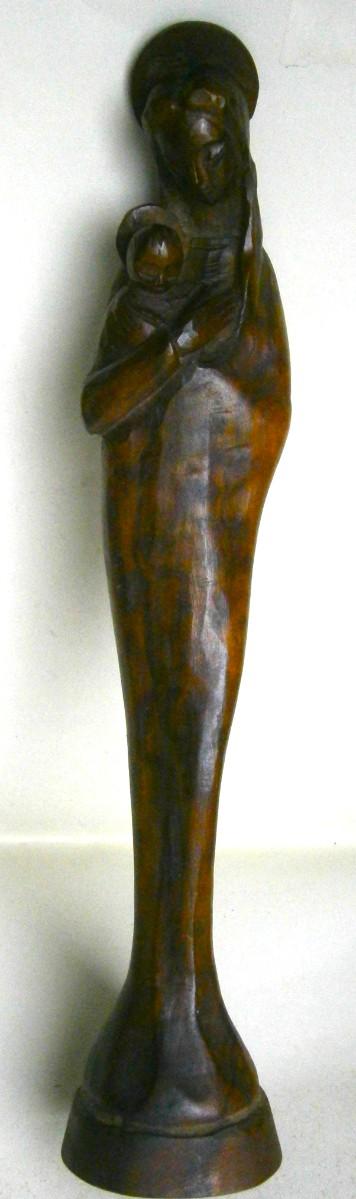 Vintage Hand Carved Figure of Madona & Child, 12 in. tall, carved hardwood.