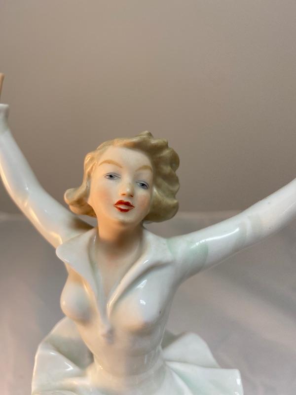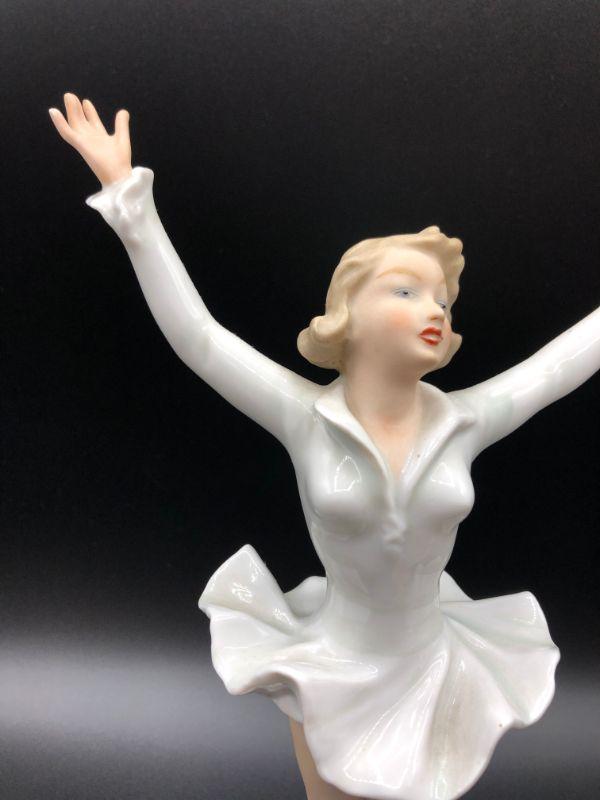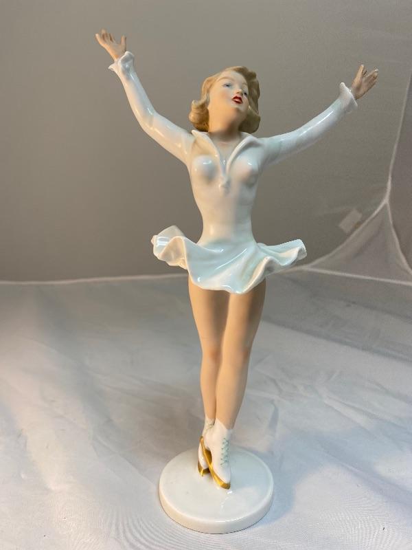 Vintage ice figure skater figurine from Wallendorf Germany. Hallmarked on the bottom. Great condition. About 9.5" tall.