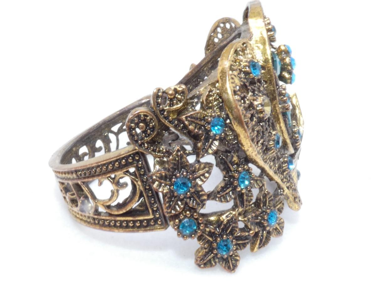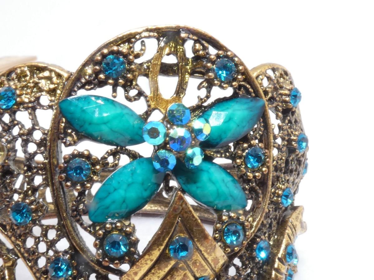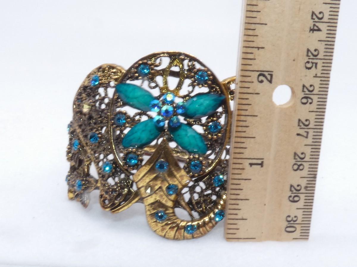 Filagree Elephant Cuff Teal Colored Bracelet (missing stones)