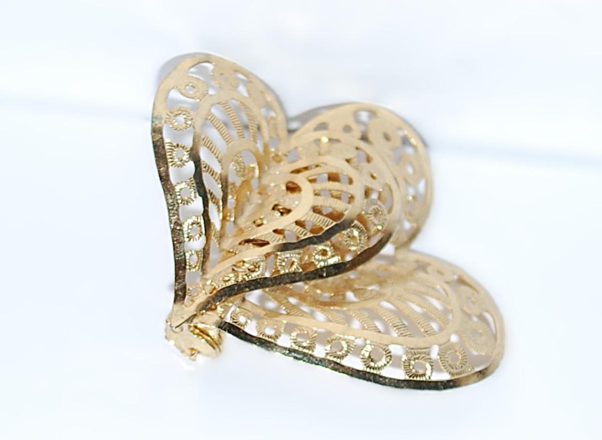 Filagree Style Gold Colored DOUBLE HEARTS BROOCH (1¾" x 1¼") on a Gold Tone Setting