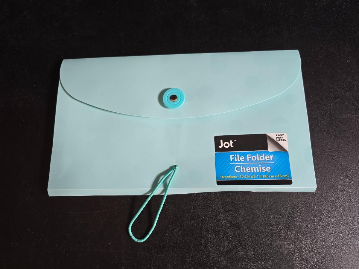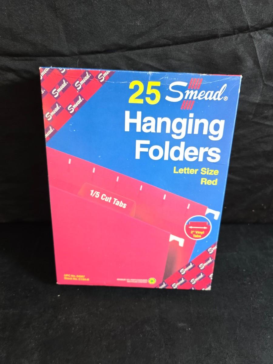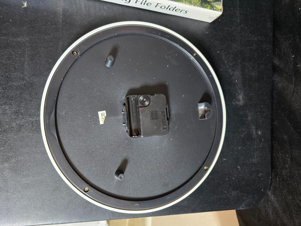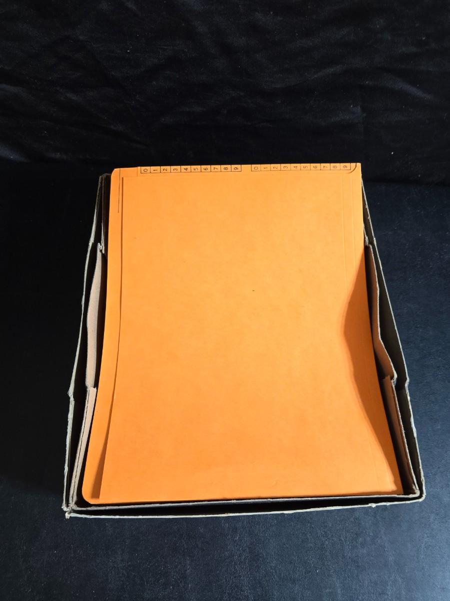 File box with new packages of folders and a nice wall clock