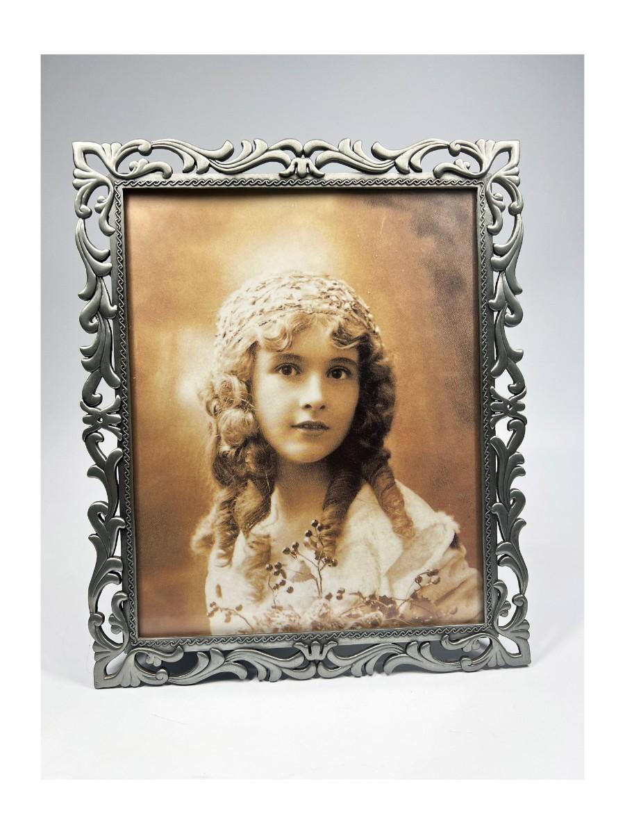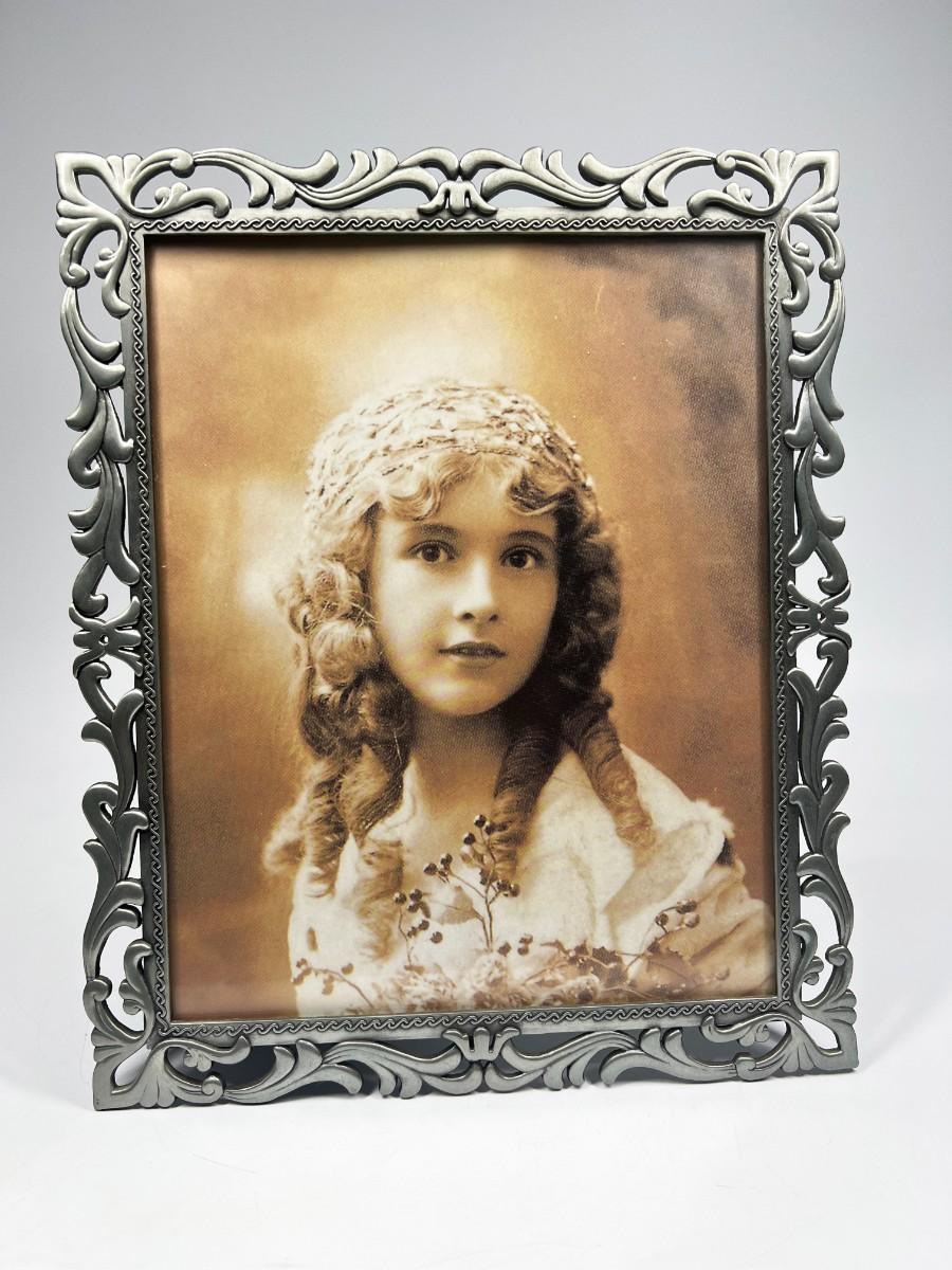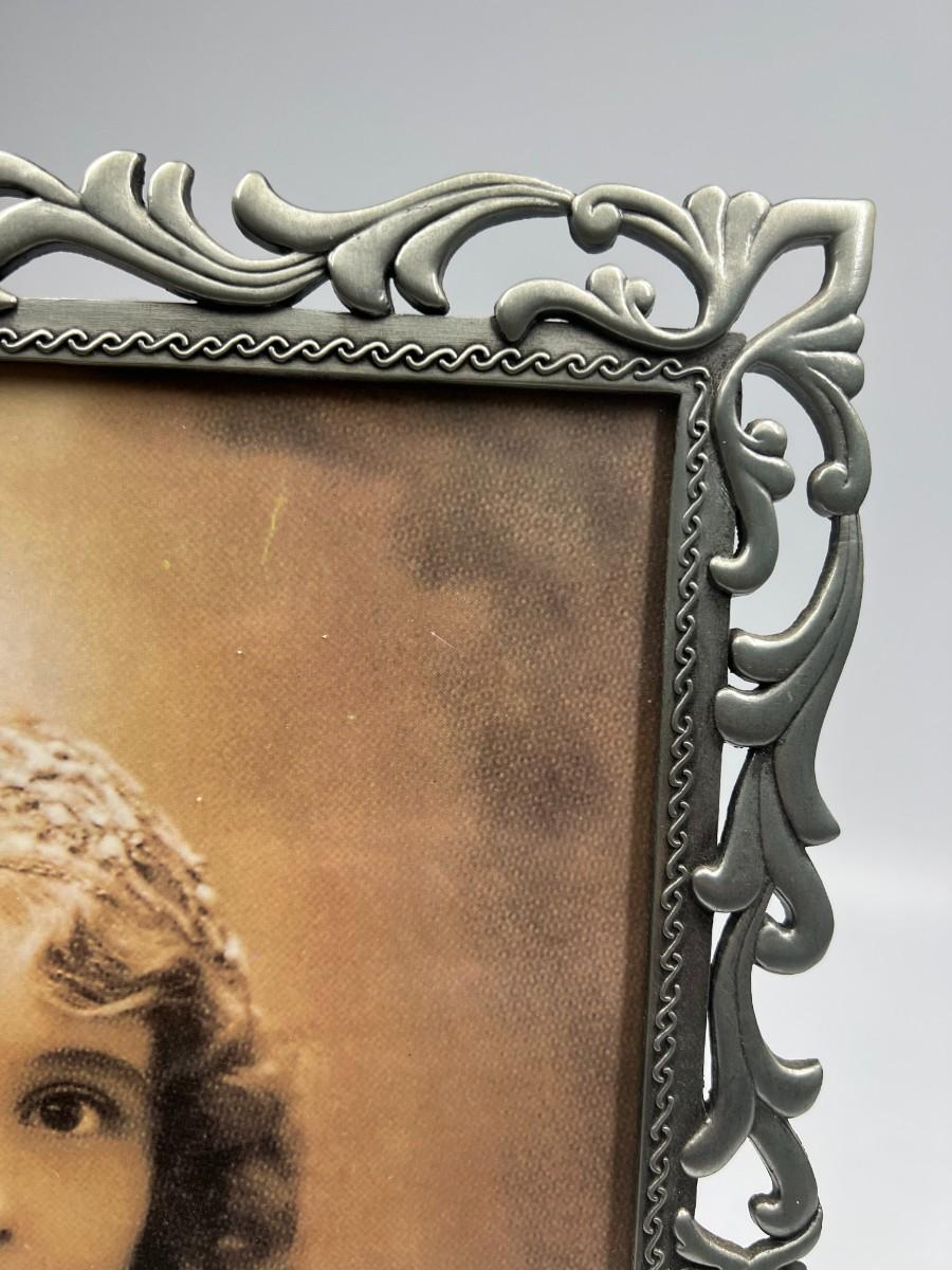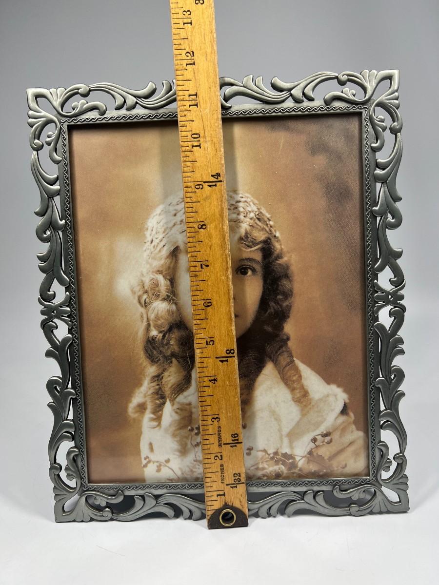 Filigree Art Nouveau Silver Tone Metal Picture Frame 8x10. Good condition. Not sure if photo in frame is vintage or just styled to look like it.