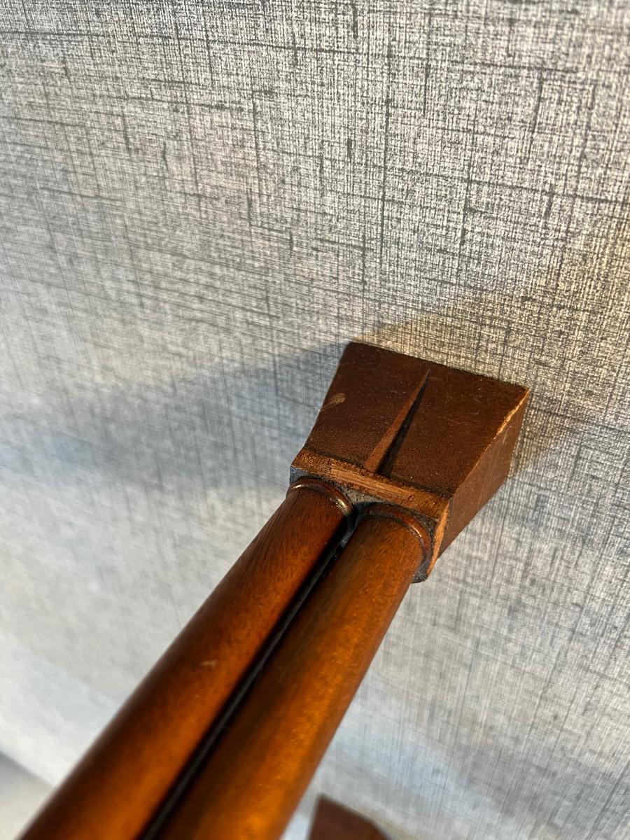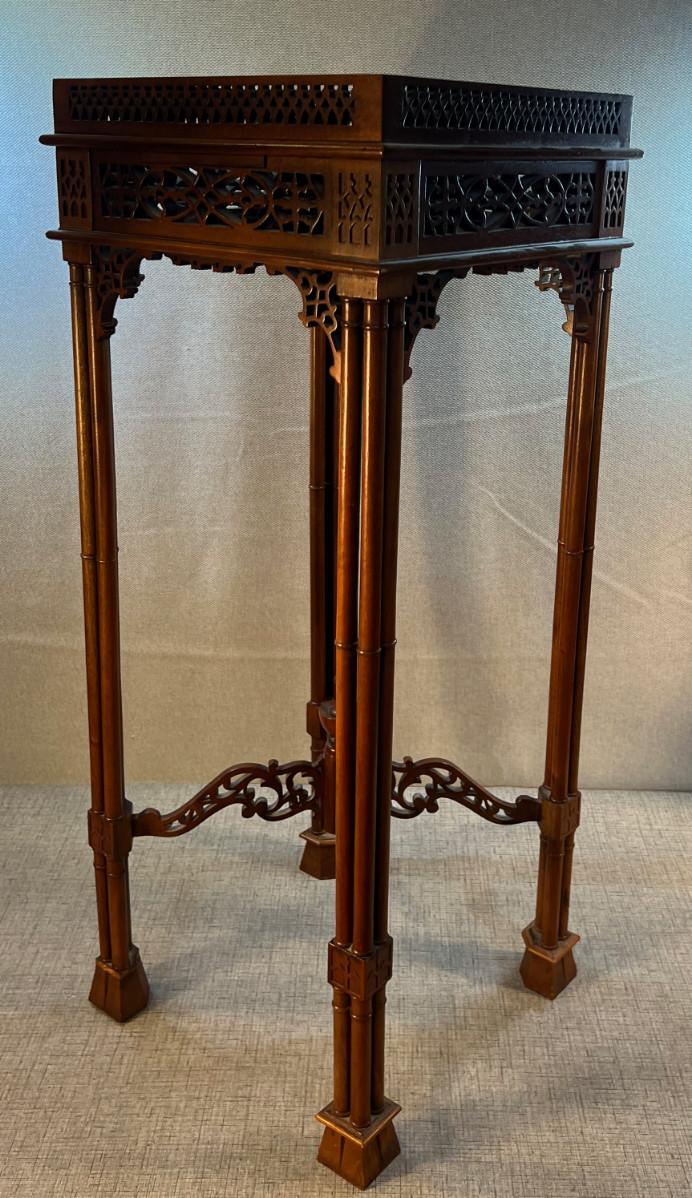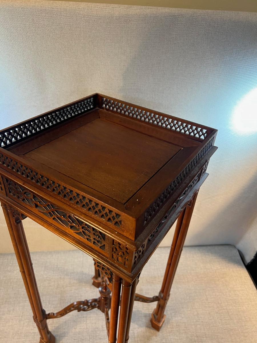 13" X 13" X 32" Mahogany Wood. Beautiful!!! One Foot has a bit of loss to it. Still Fabulous piece!