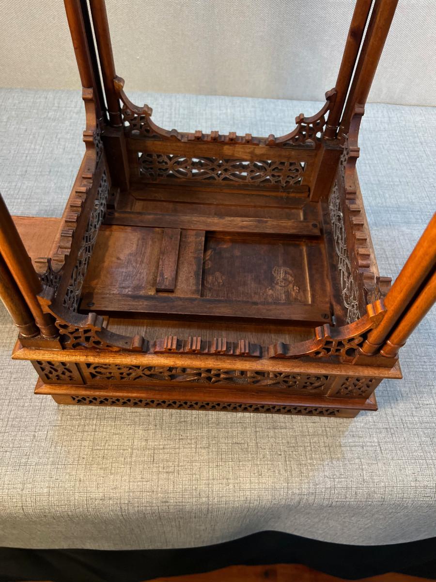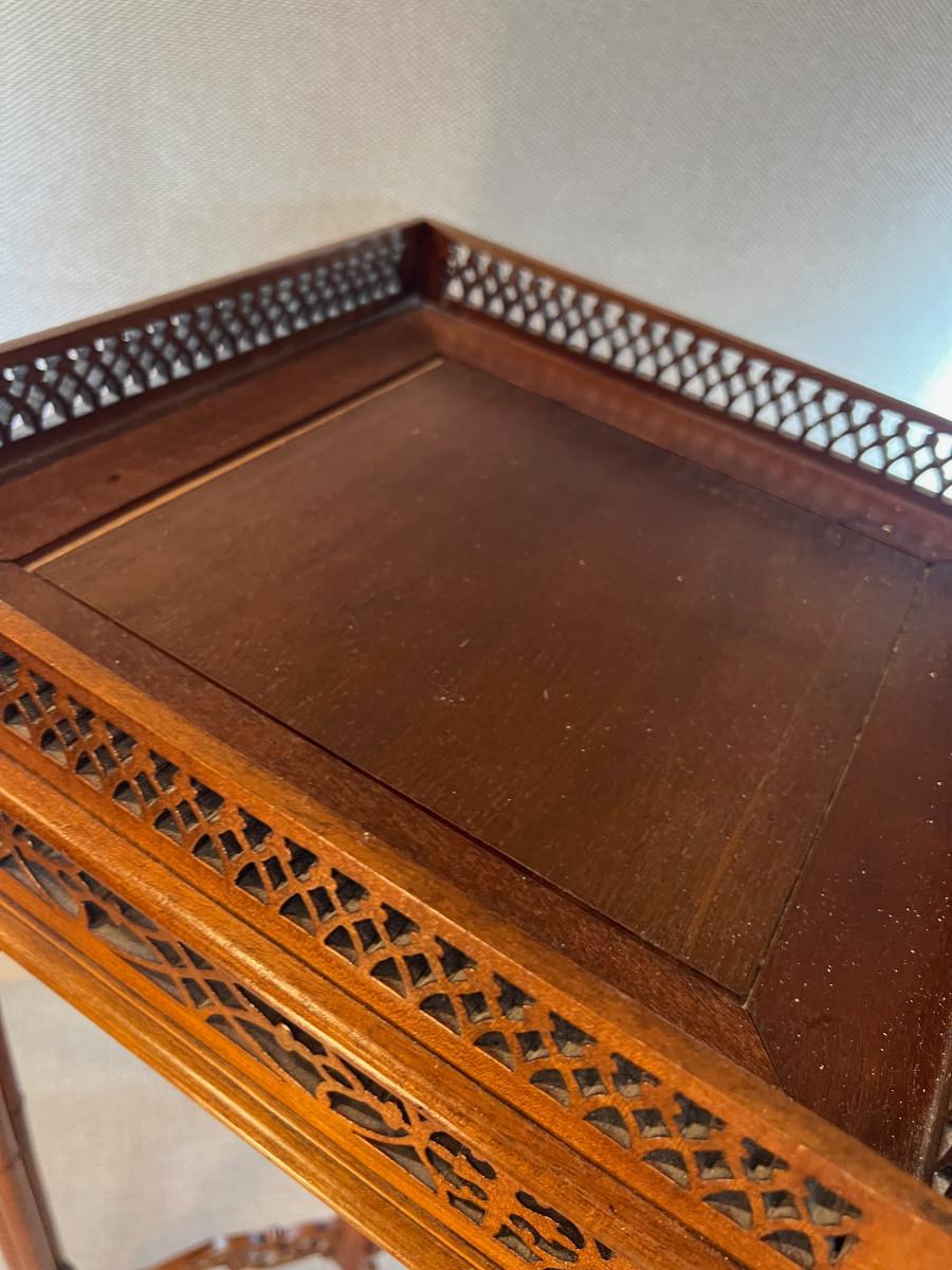 Filigree Carved Fern Stand with Note Drawer Pull Out