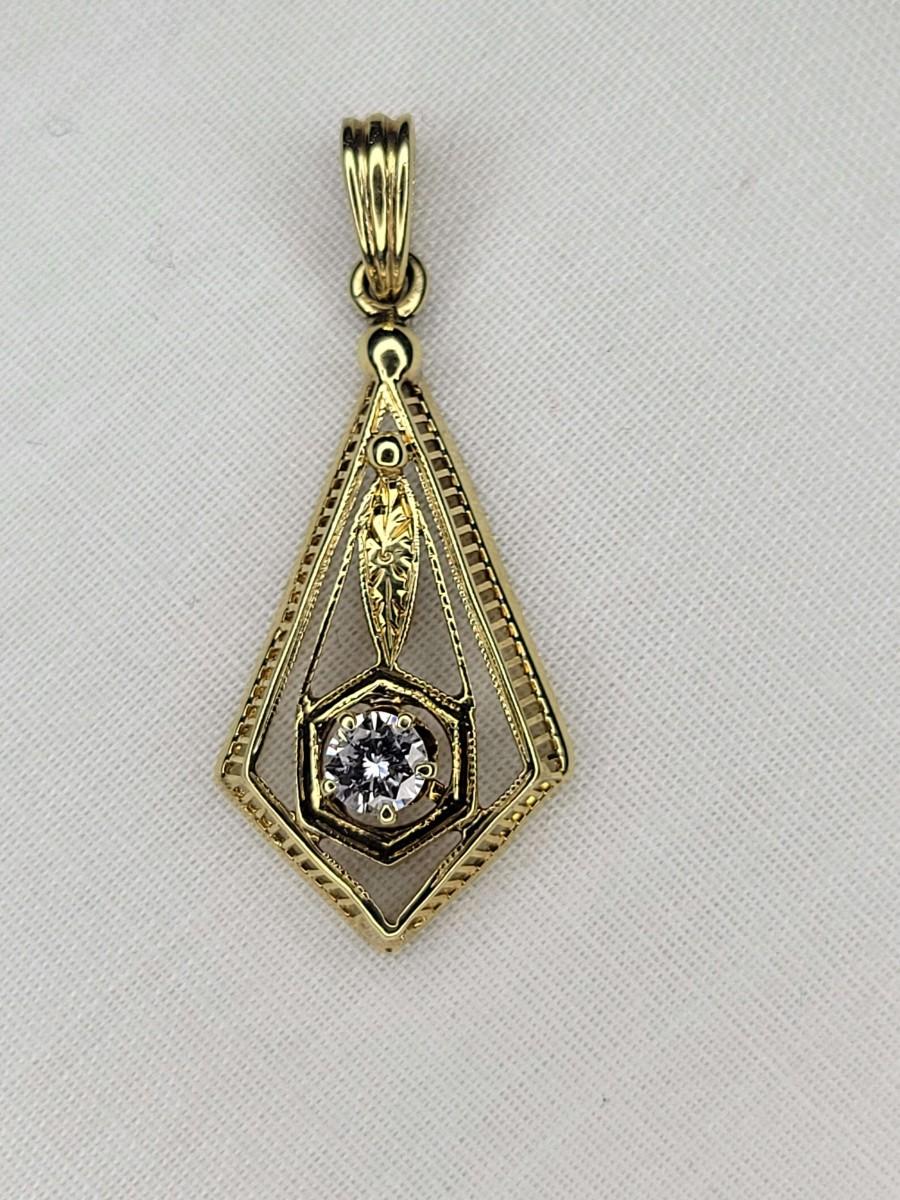 14k yellow gold filigree 0.25Ct. diamond pendant-no chain