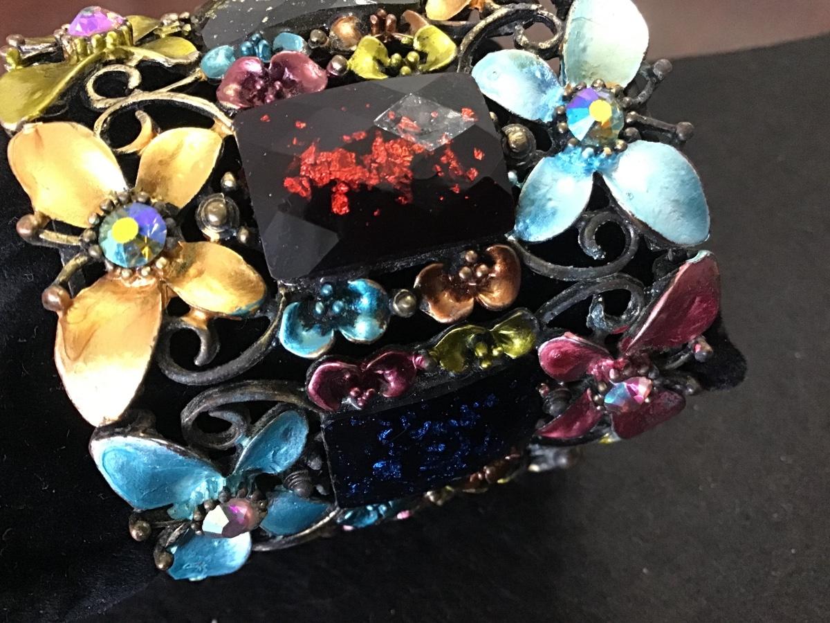 Filigree Open Cuff Rhinestone Butterfly Wide