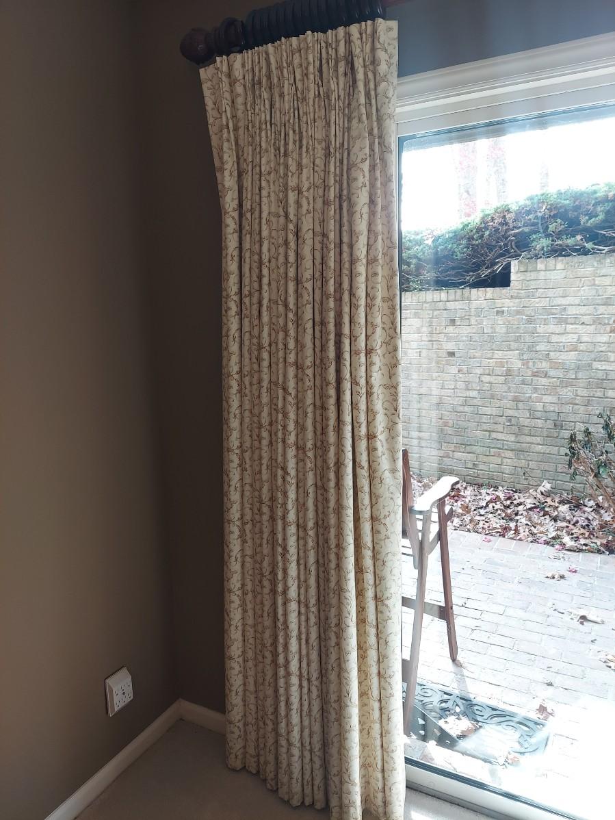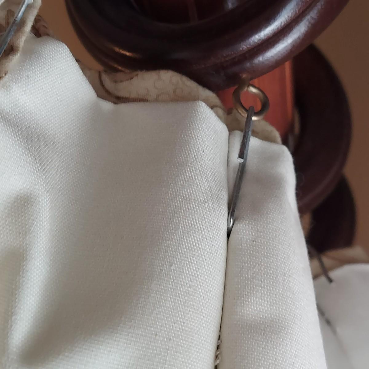 Two curtain panels that require drapery clips or pins. Each panel is approximately 60” x 82"H. The curtain rod and wooden rings are not included. Please see photos for details. Shipping available