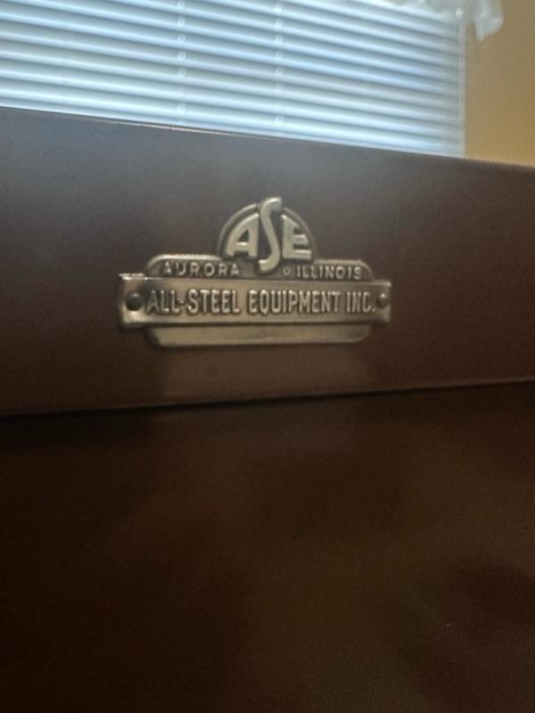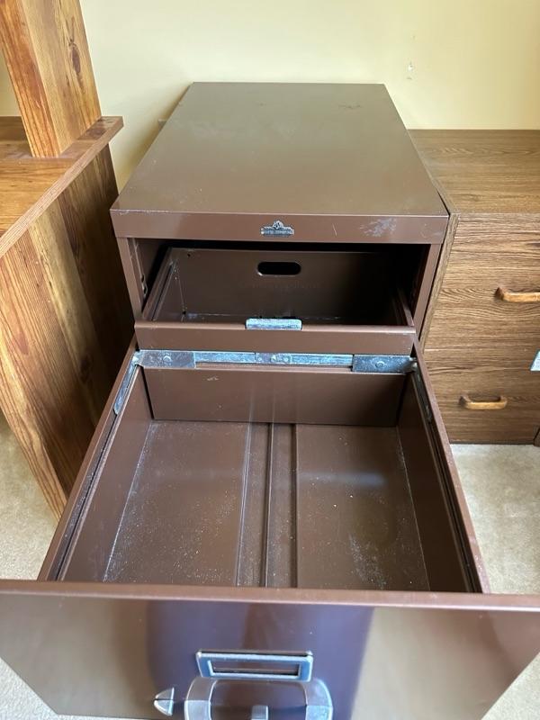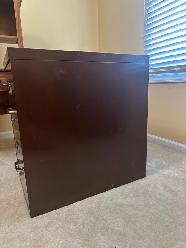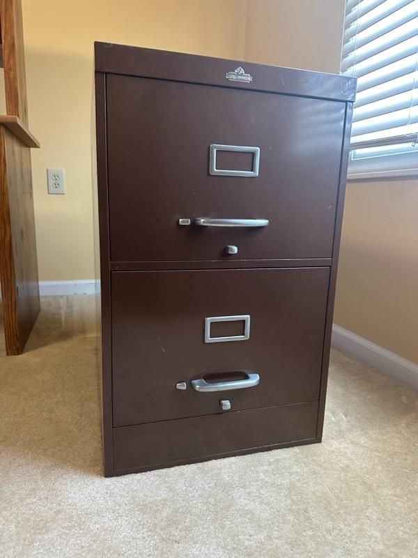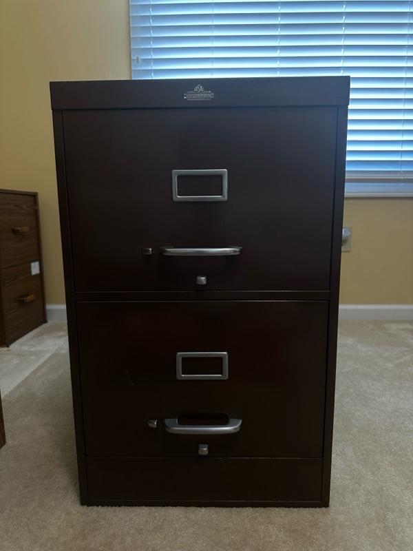 Filing Cabinet #1 / Brown filing cabinet with two drawers in working condition. Drawers are easy to open and close.