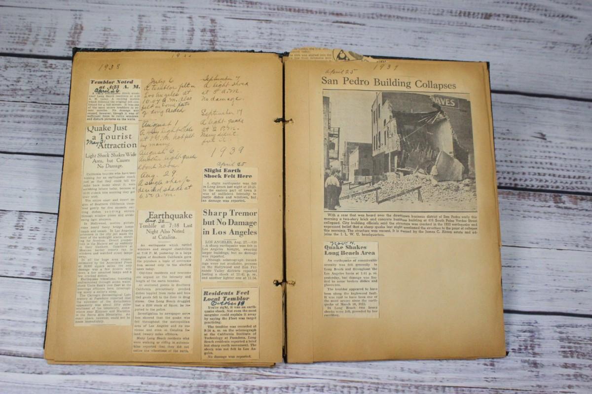 Filled Vintage Scrapbook About California's Earthquakes