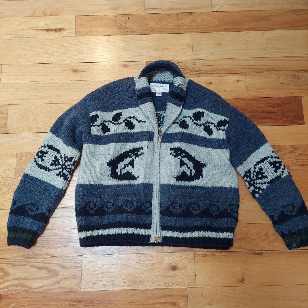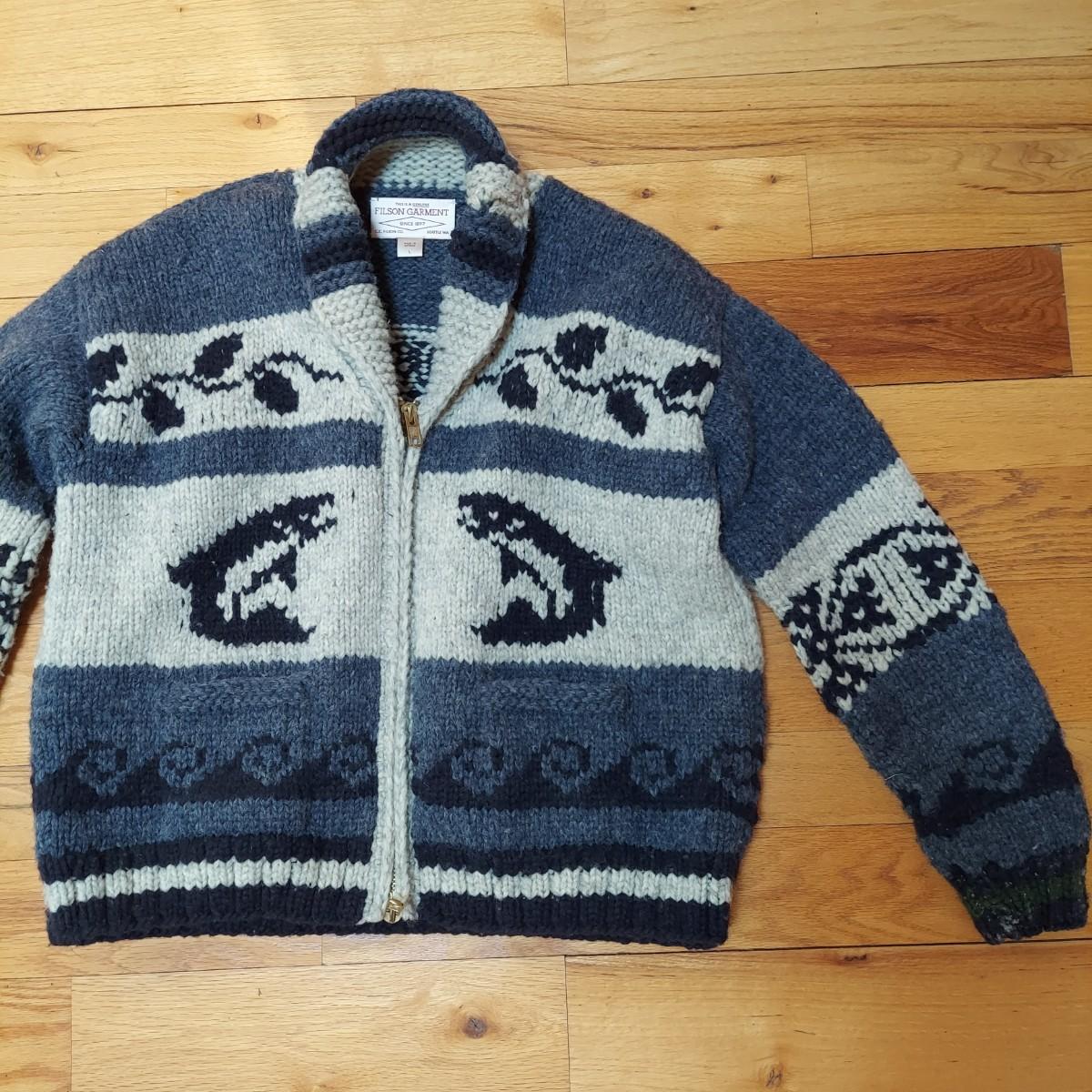 Filson outdoor wear brand authentic wool Cowichan sweater. Handmade in Canada. Has Chunky metal zipper. Size large. See photos for details. Shipping available