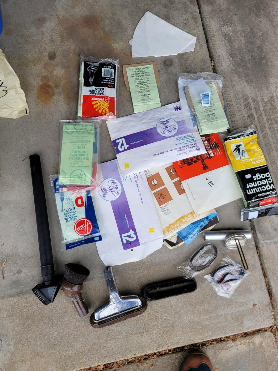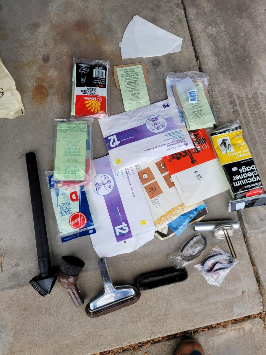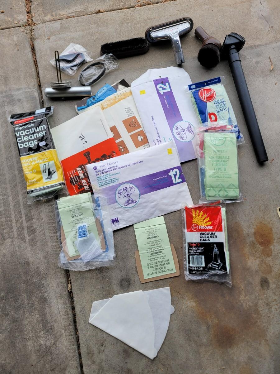 Assortment of vacuum attachments amd bags