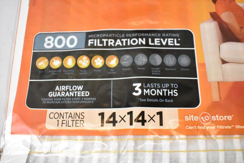 Filtrete 14x14x1, Allergen Defense Micro Particle Reduction HVAC Furnace Air Filter, 800 MPR, Pack of 4 Filters - New