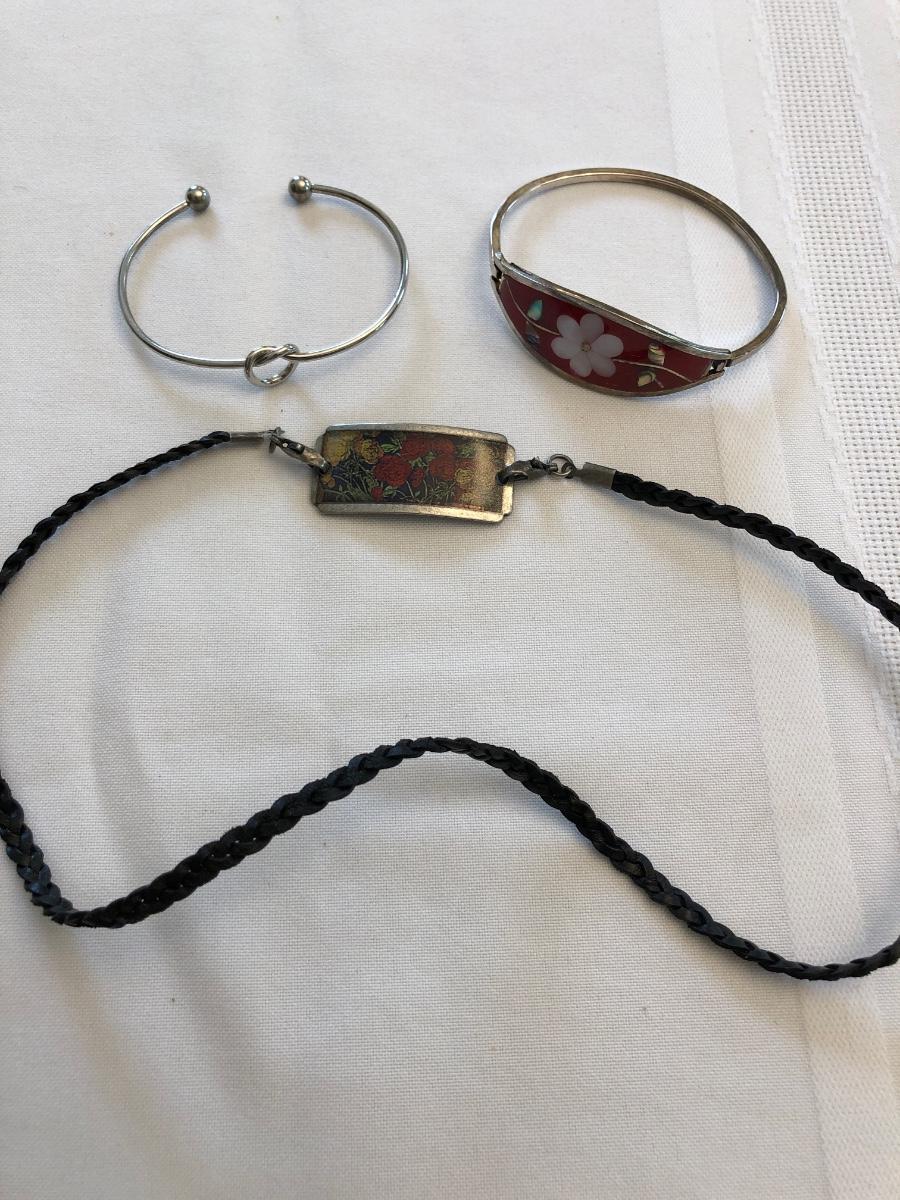 Please see pictures. Two bracelets and one necklace. Sterling/Mother of pearl.